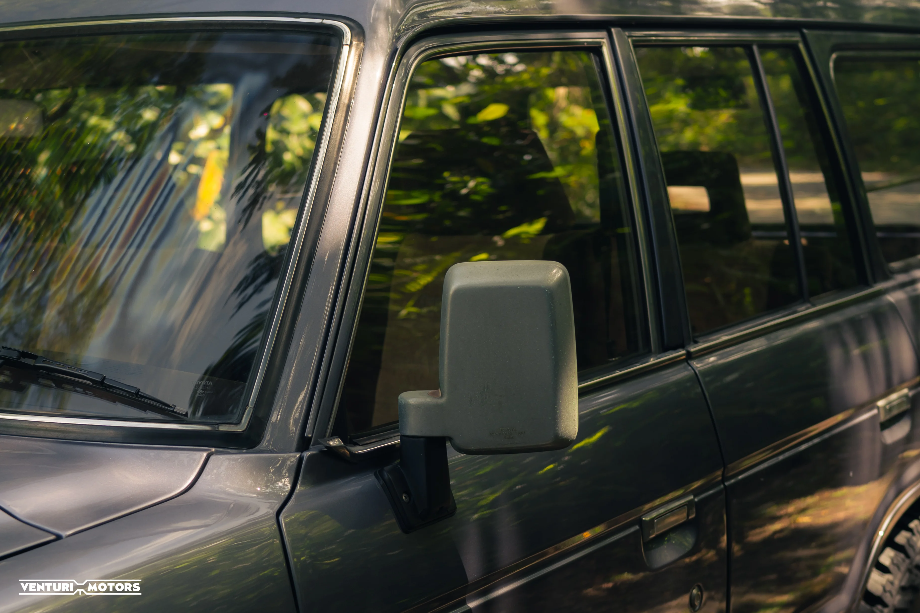 In this LC60, the interior flows seamlessly from the clean, simplistic dashboard to the center console, all finished in a timeless tan-brown combination that evokes a classic, rugged charm. Powered by the 4.0L Turbo-Diesel engine, better known for its torque and fuel efficiency, with amenities like cold a/c, power steering, and upgraded seats ensure you arrive refreshed, no matter how rough the trail.