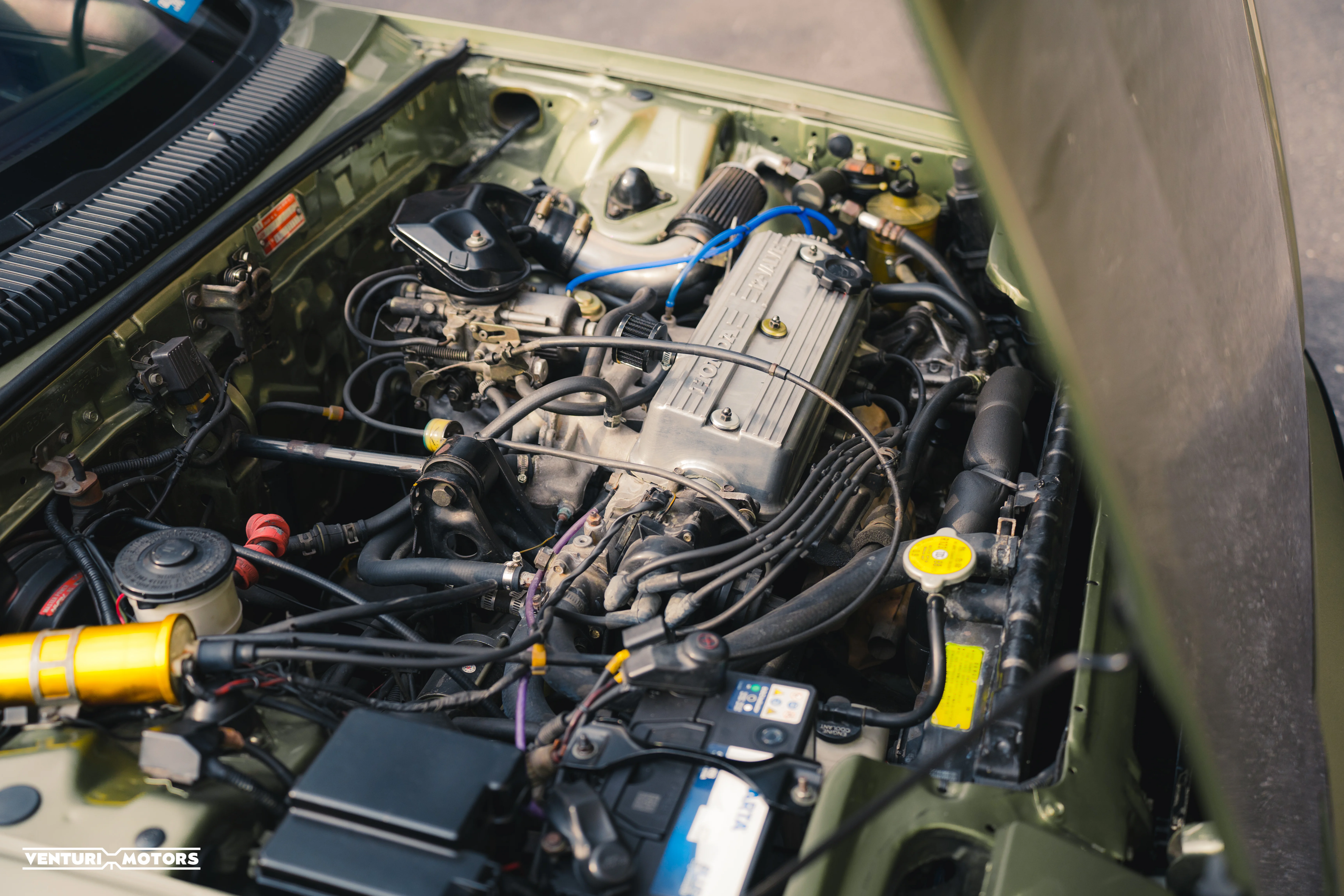 Powering the car is an inline-4 SOHC carburated engine, paired with a 5-speed manual transmission, delivering a raw, engaging drive through the front wheels. Upgraded with coilovers all around, the stance is sharpened while enhancing overall handling dynamics.