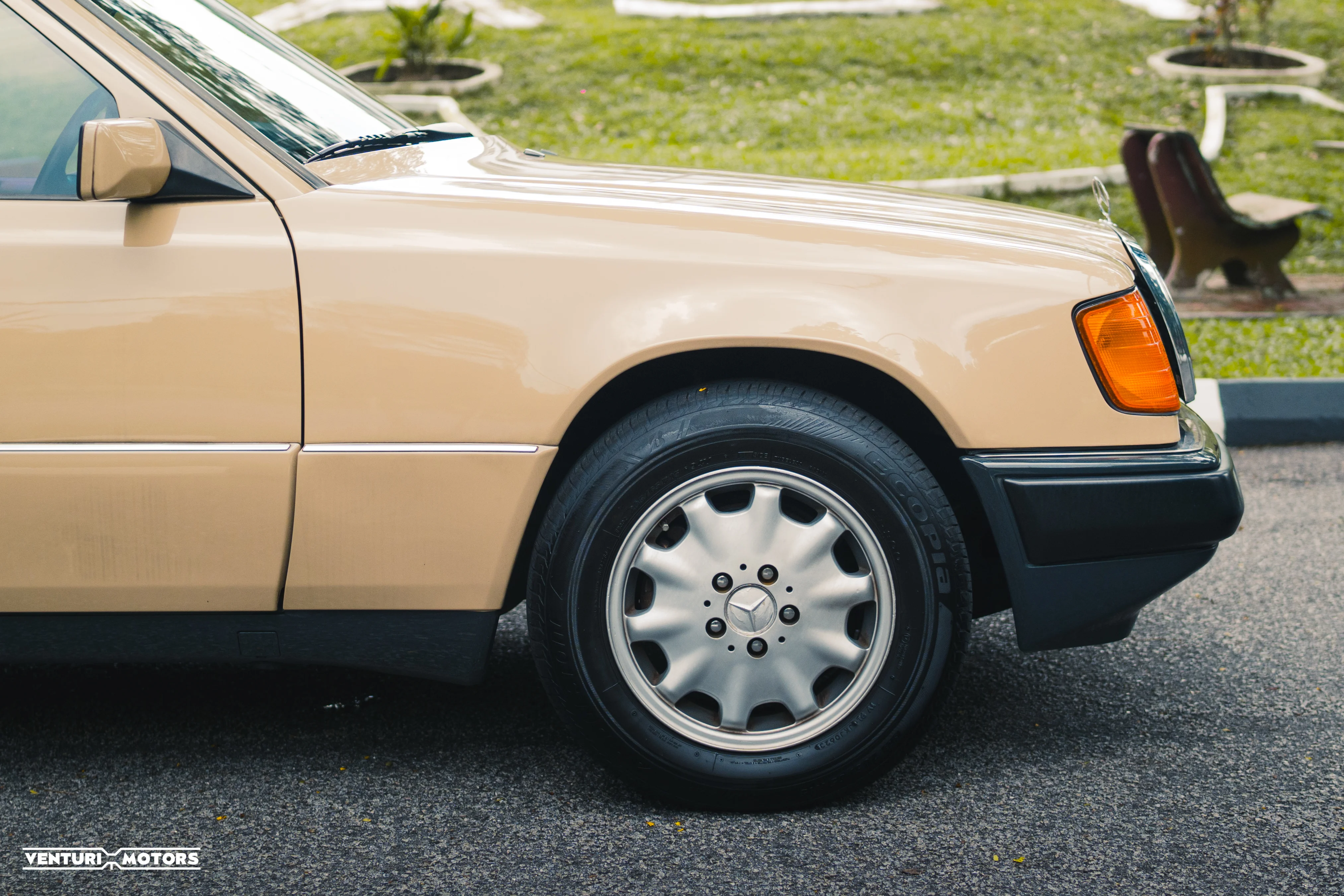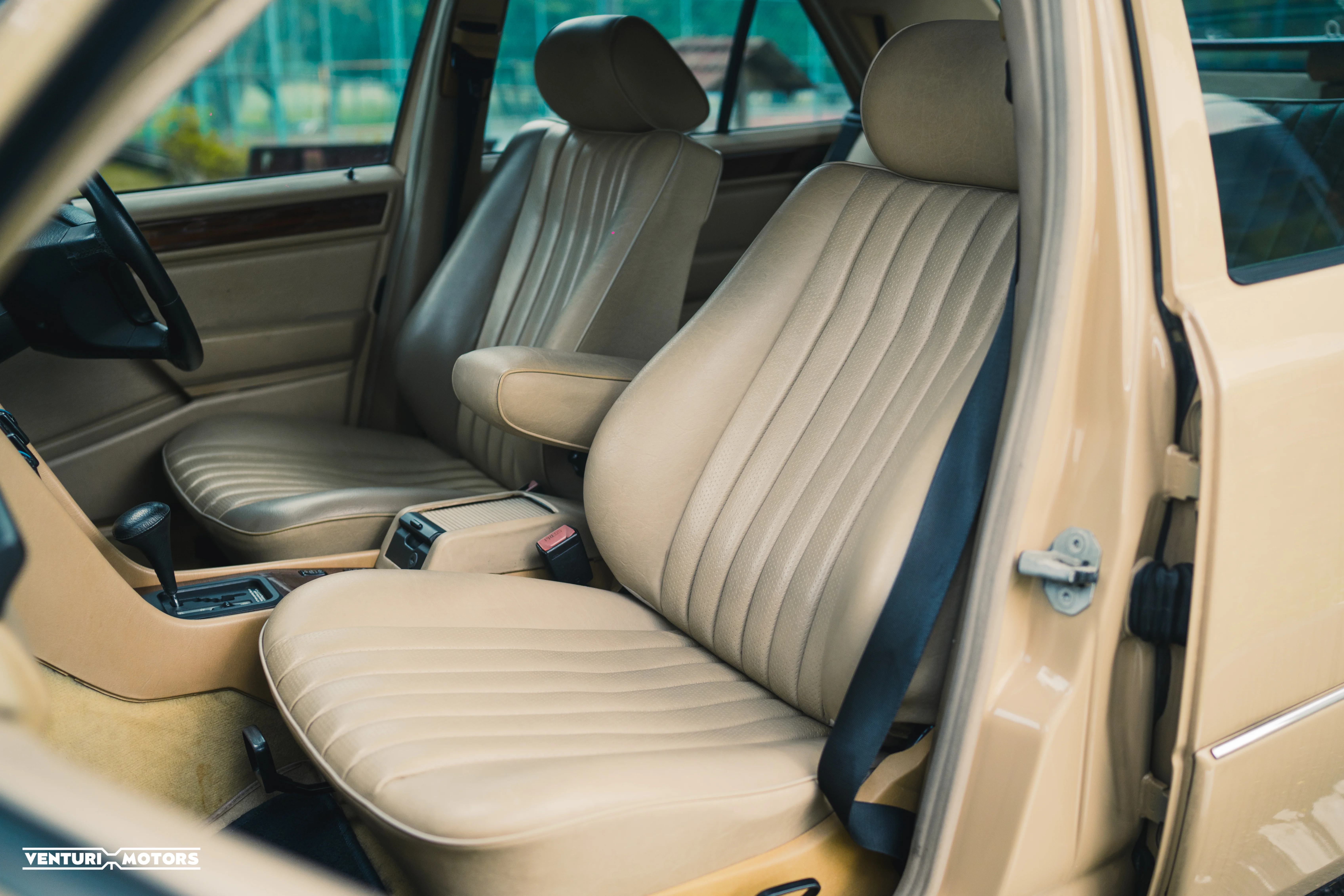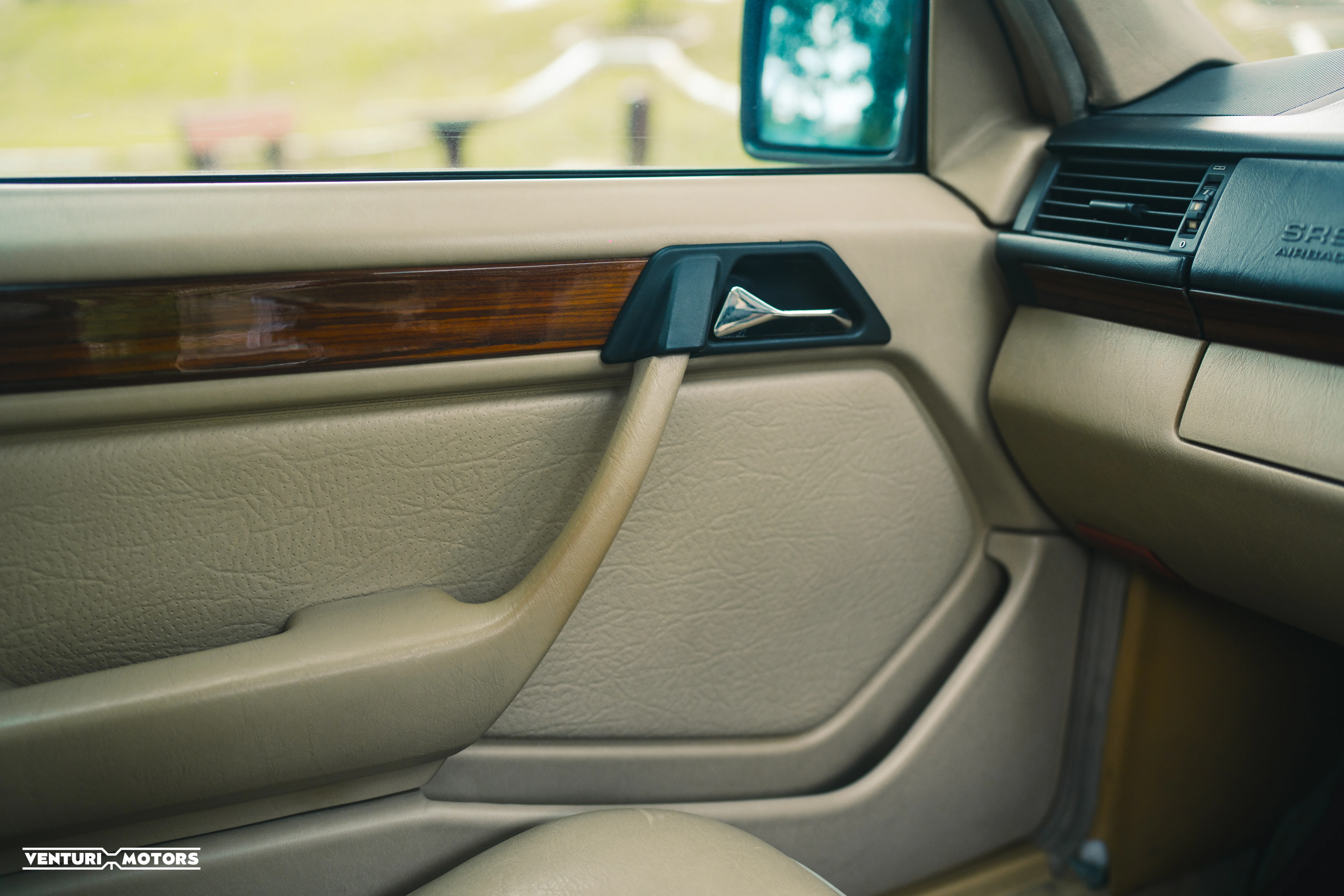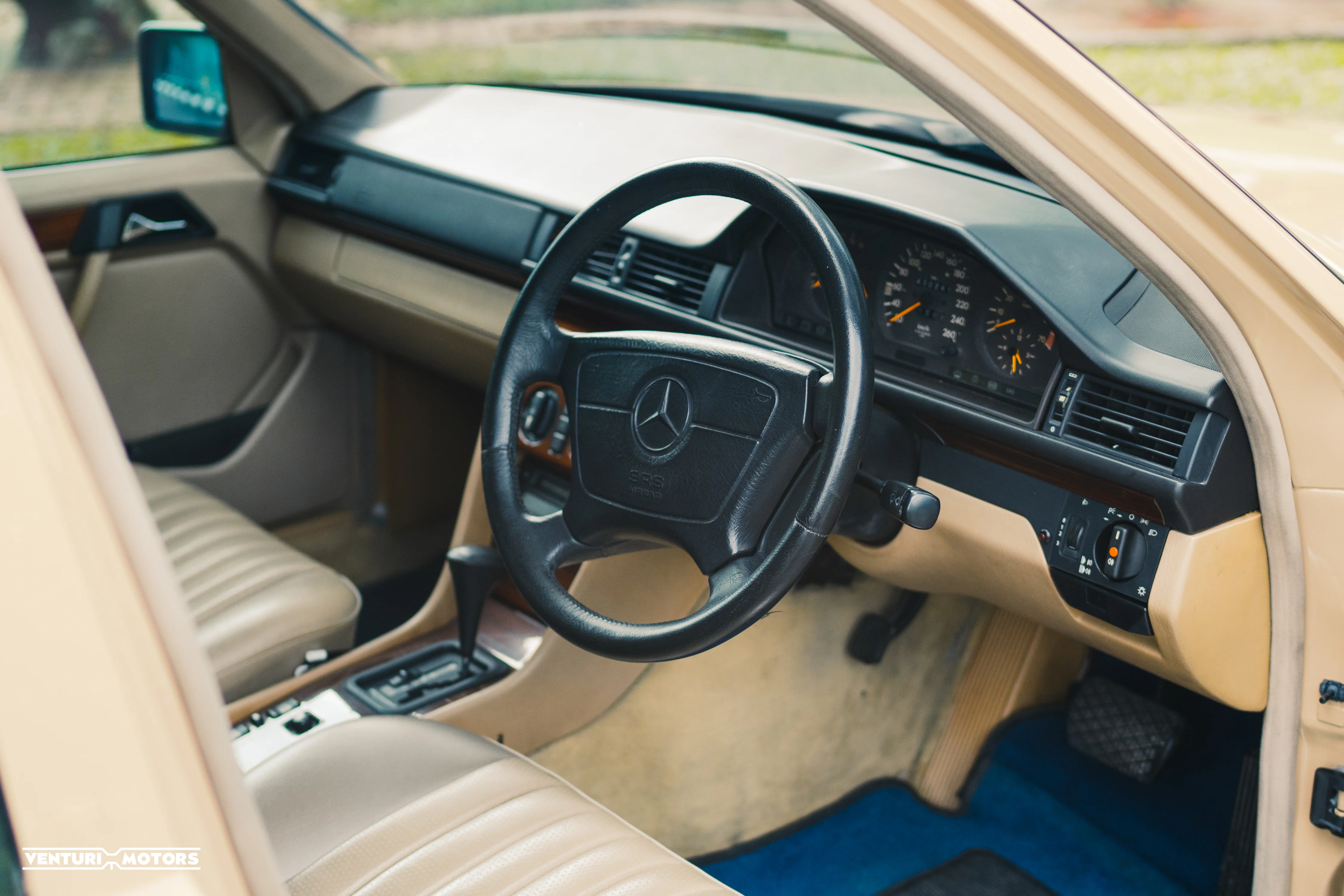 This particular example is a 1994 Mercedes-Benz E280, tastefully backdated with the elegant styling cues of the earlier pre-facelift models. Finished in a classic shade of beige, the paintwork pairs seamlessly with its matching beige MB-Tex interior—durable, inviting, and accented by period-correct wood trims.