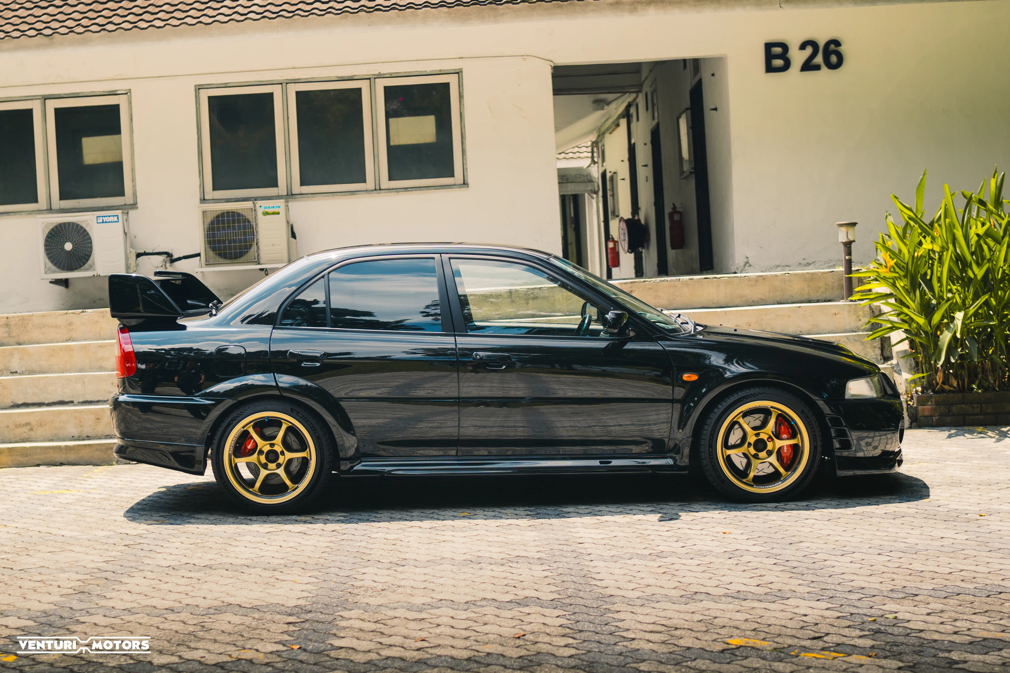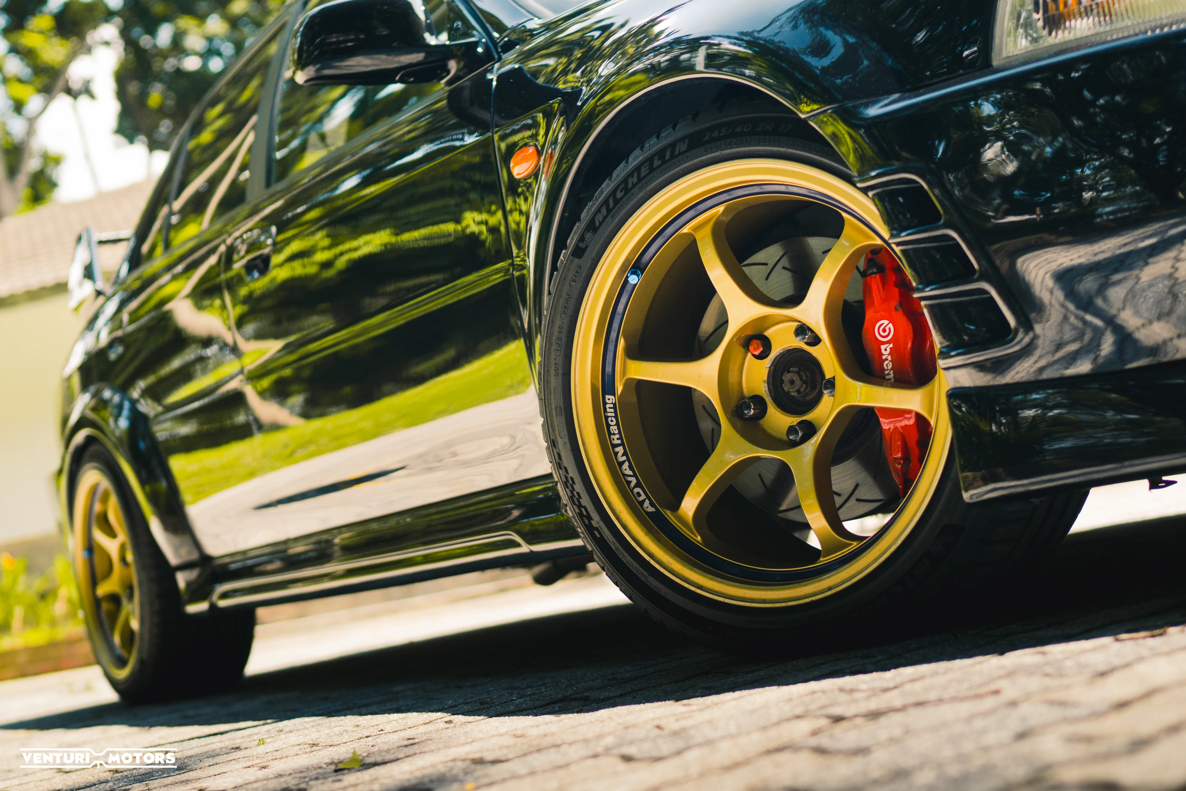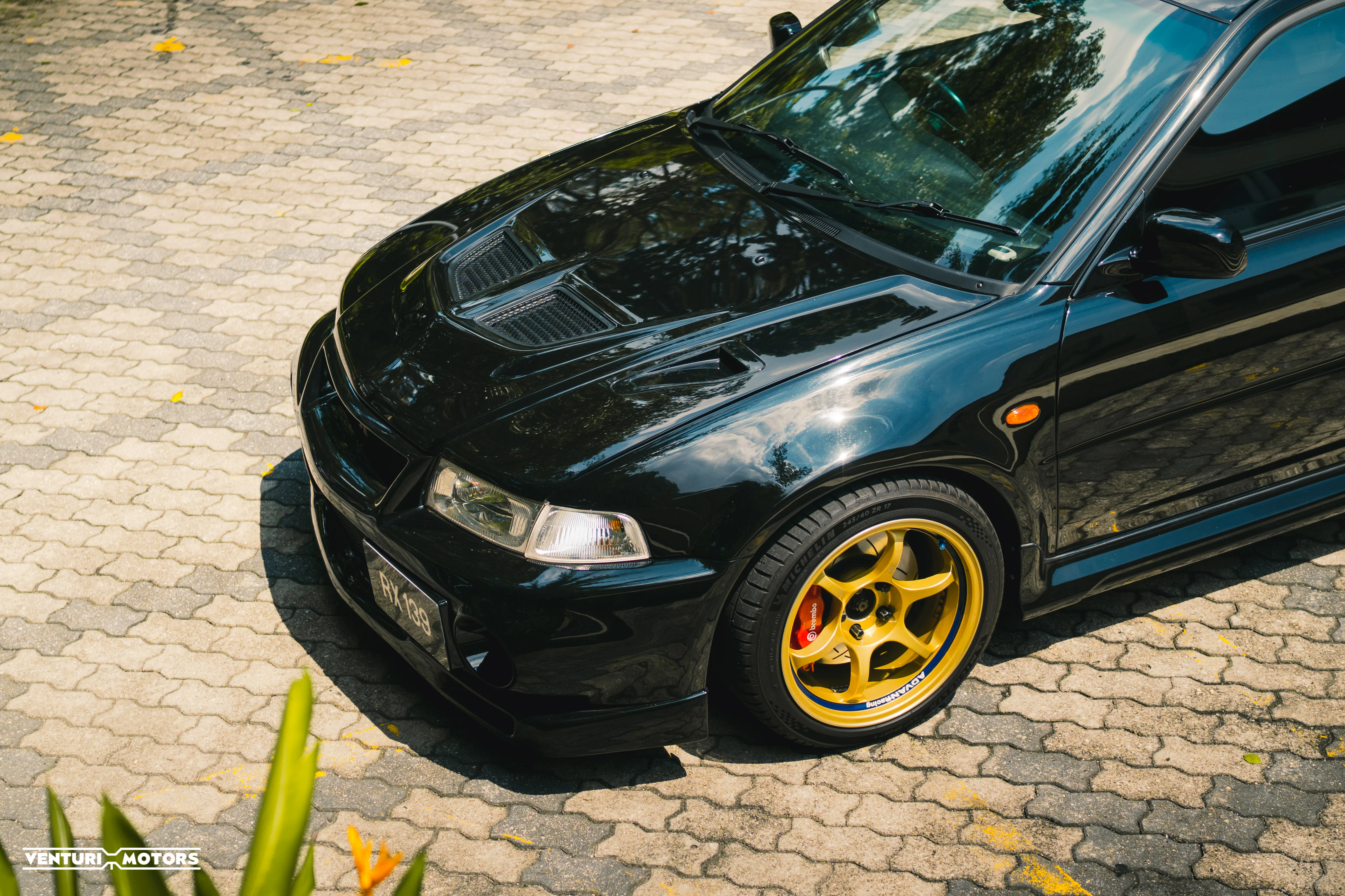 This particular example is a 1999 Evolution VI GSR finished in the rarely-seen Pyrenees Black—a deep, metallic tone that highlights the aggressive lines of the factory widebody and signature rally wing. Sitting on iconic Gold Advan RG wheels,
