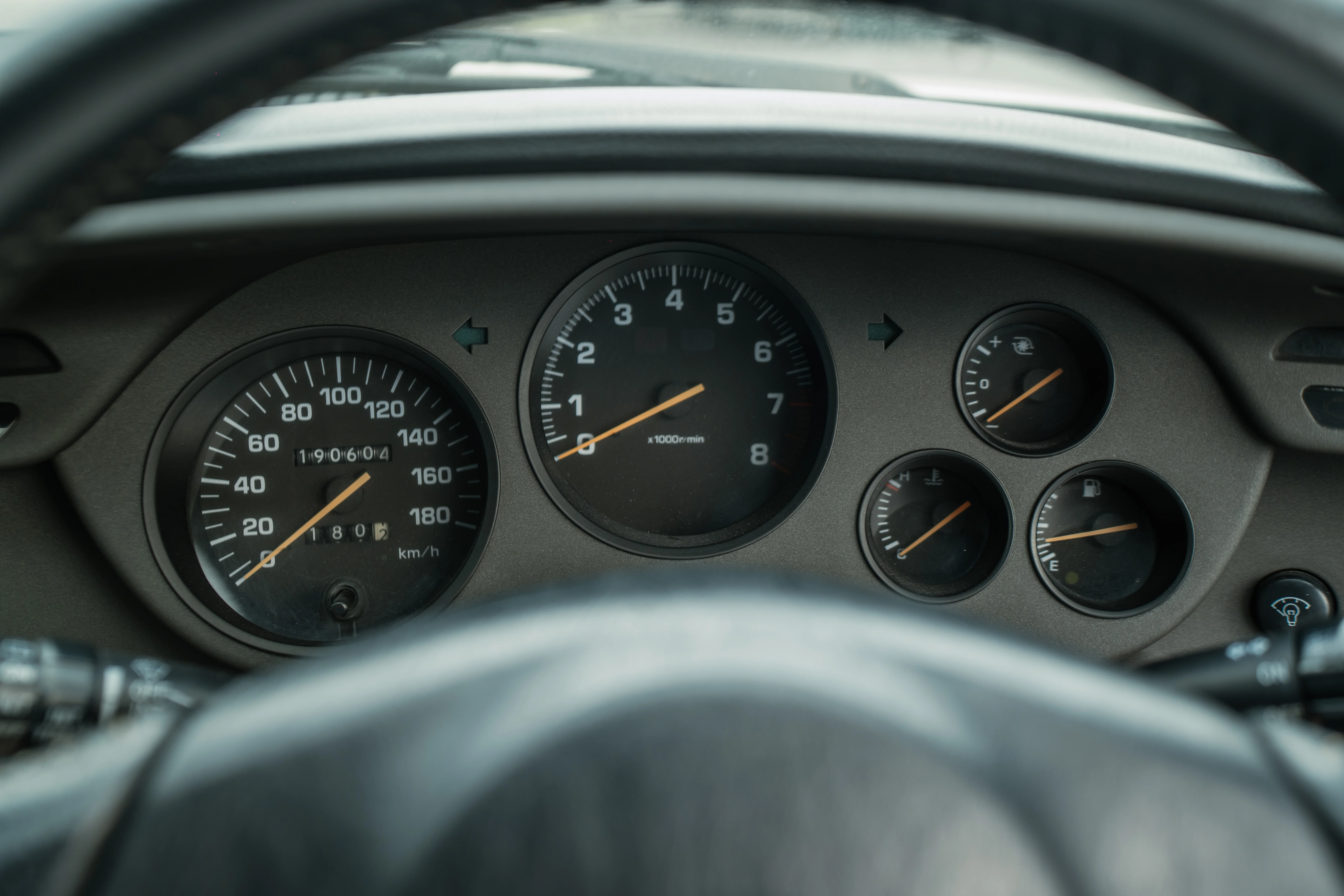 What makes this Supra truly captivating is its preservation. Mostly in original condition, it carries the details of its era with pride. The optional factory aero kit, complete with side skirts and rear spats, sharpens its stance, while PIAA Rozza wheels add period-correct flair. Even the aftermarket radio feels like a time capsule, a nod to the tuner culture that elevated the Supra to icon status.