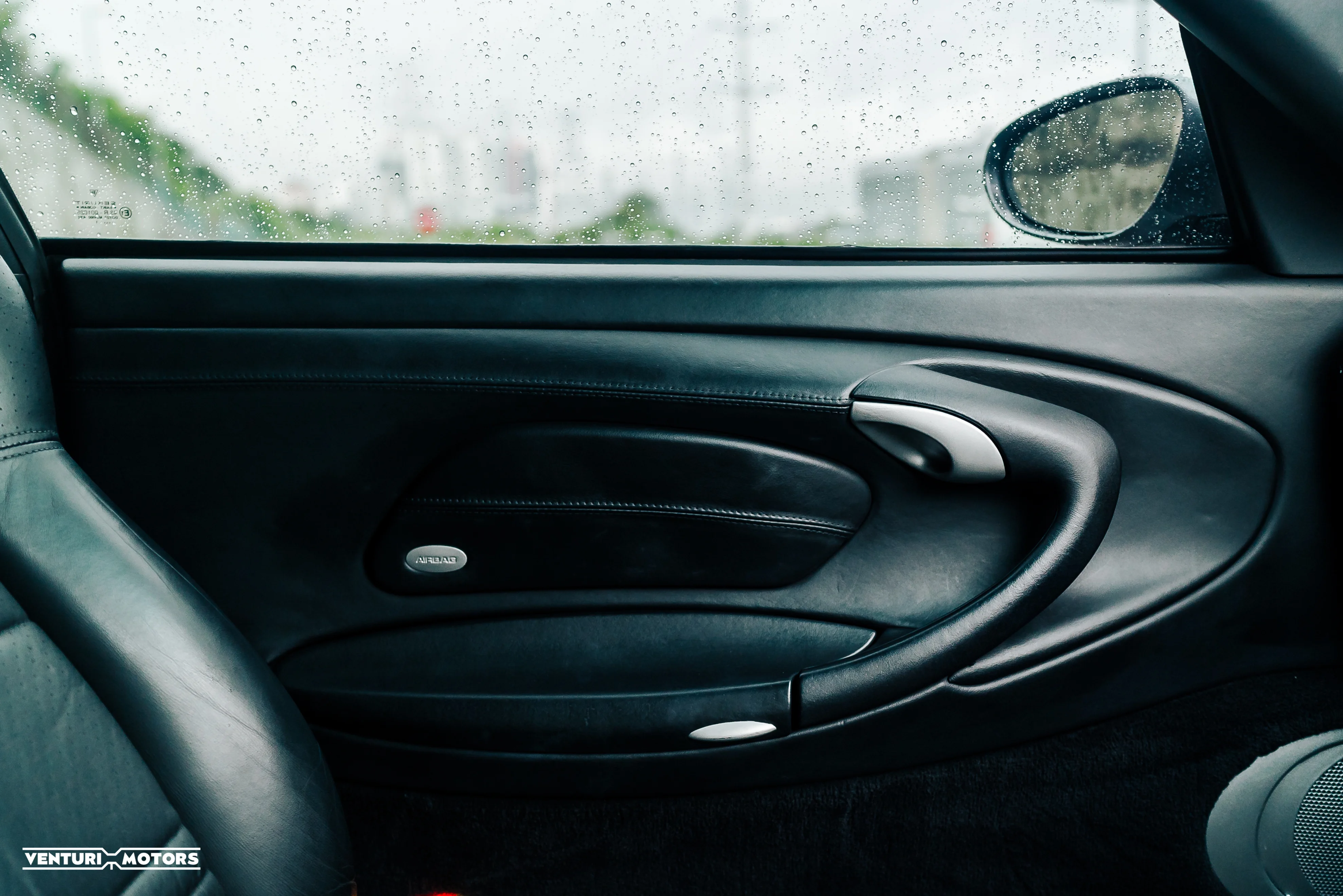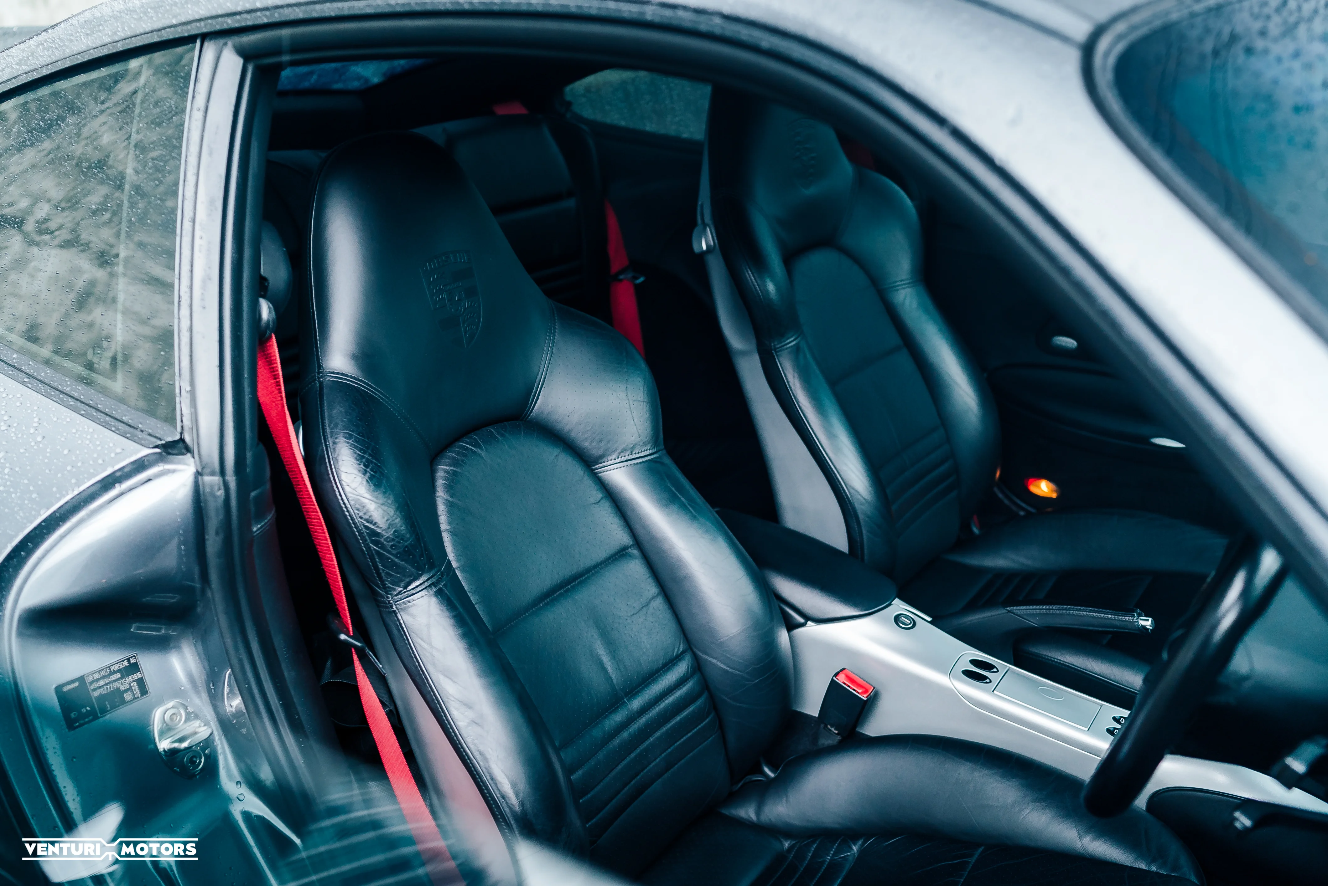 Inside, a complete black leather finish awaits, along with Turbo seats featuring Silver-colored backings, serving as a constant reminder of the authentic sports car experience. Additional features like Kenwood head unit are included in case you need some entertainment, or you would rather enjoy the custom GT3 style exhaust system producing a melodic symphony of flat-6 sounds.