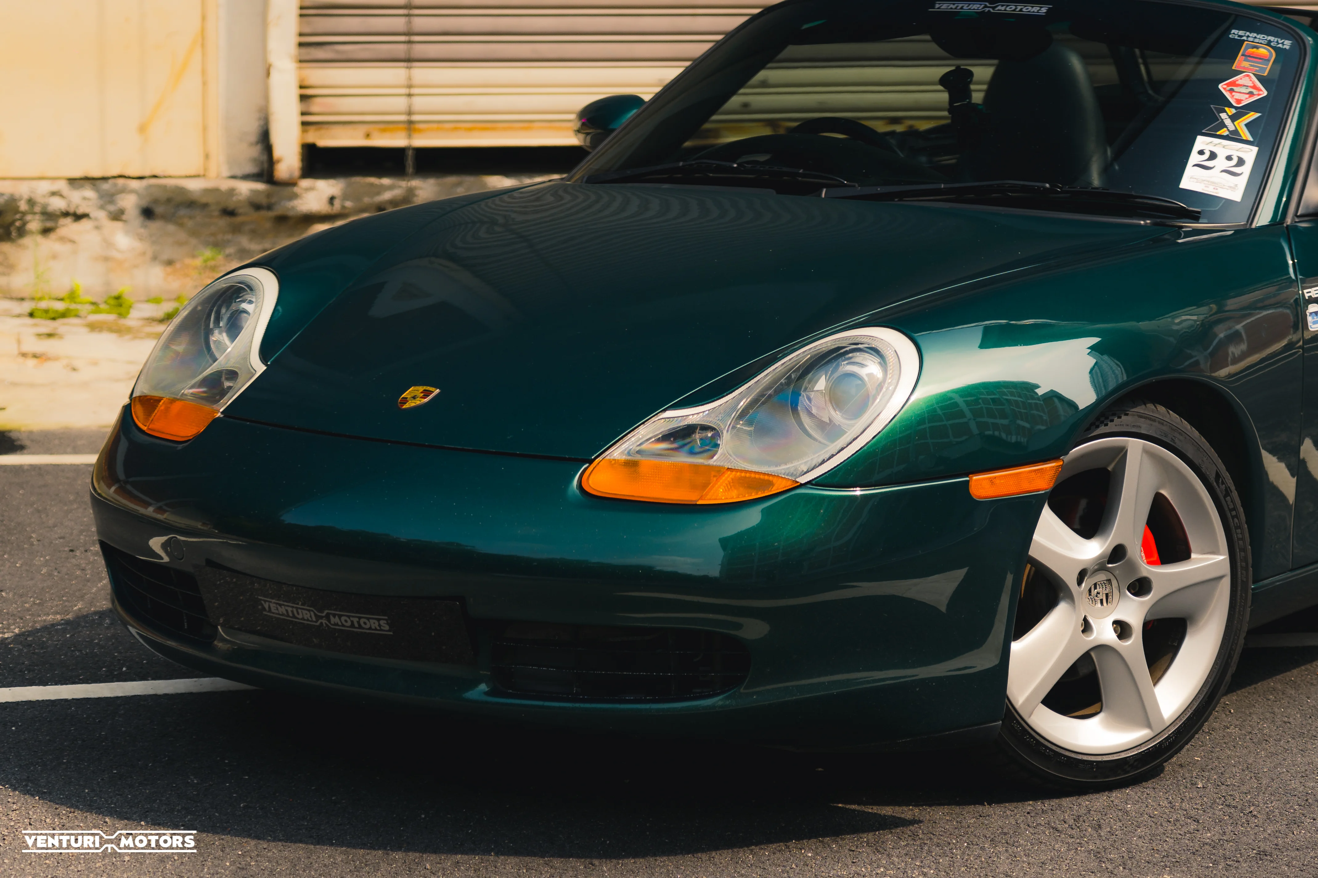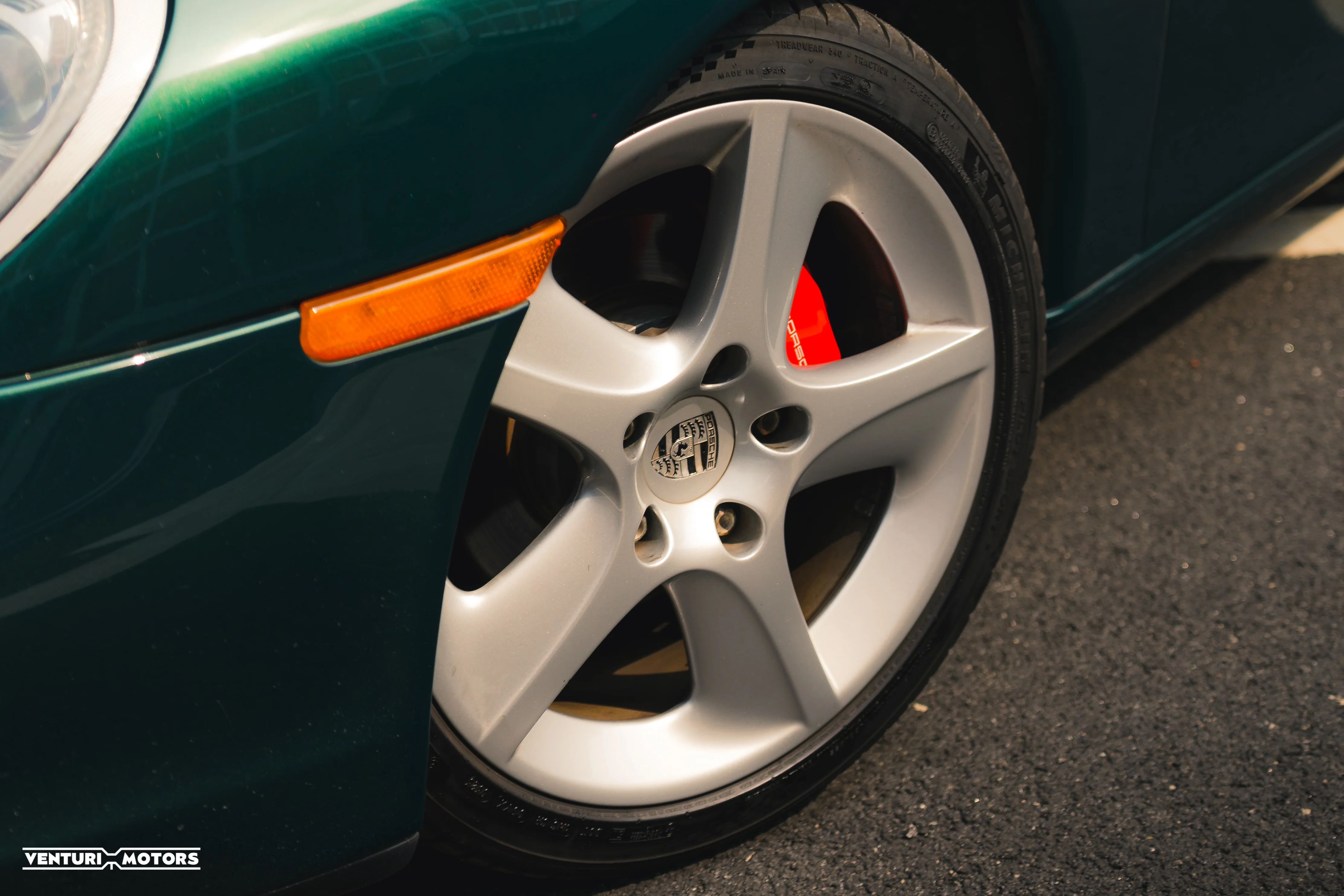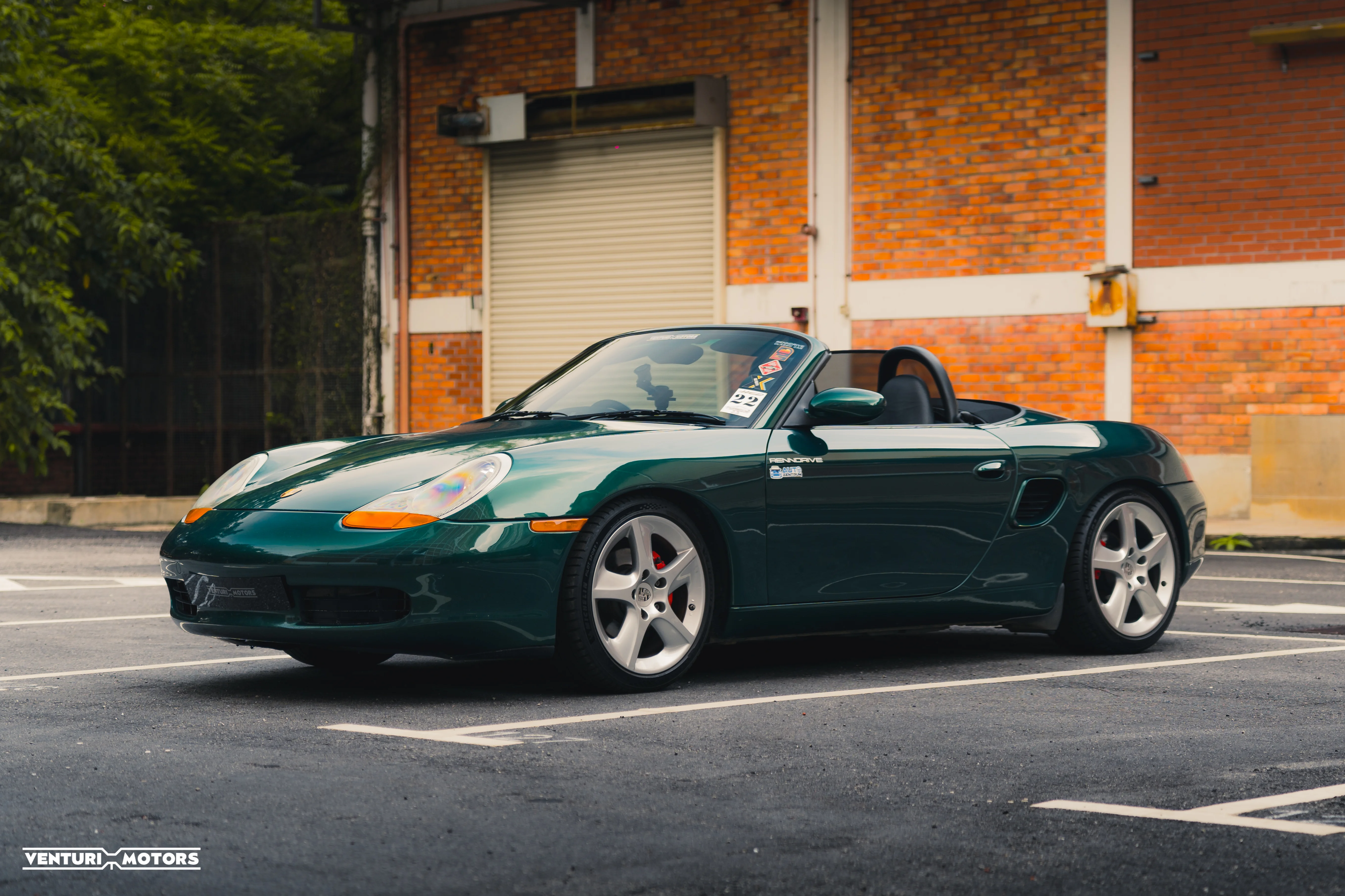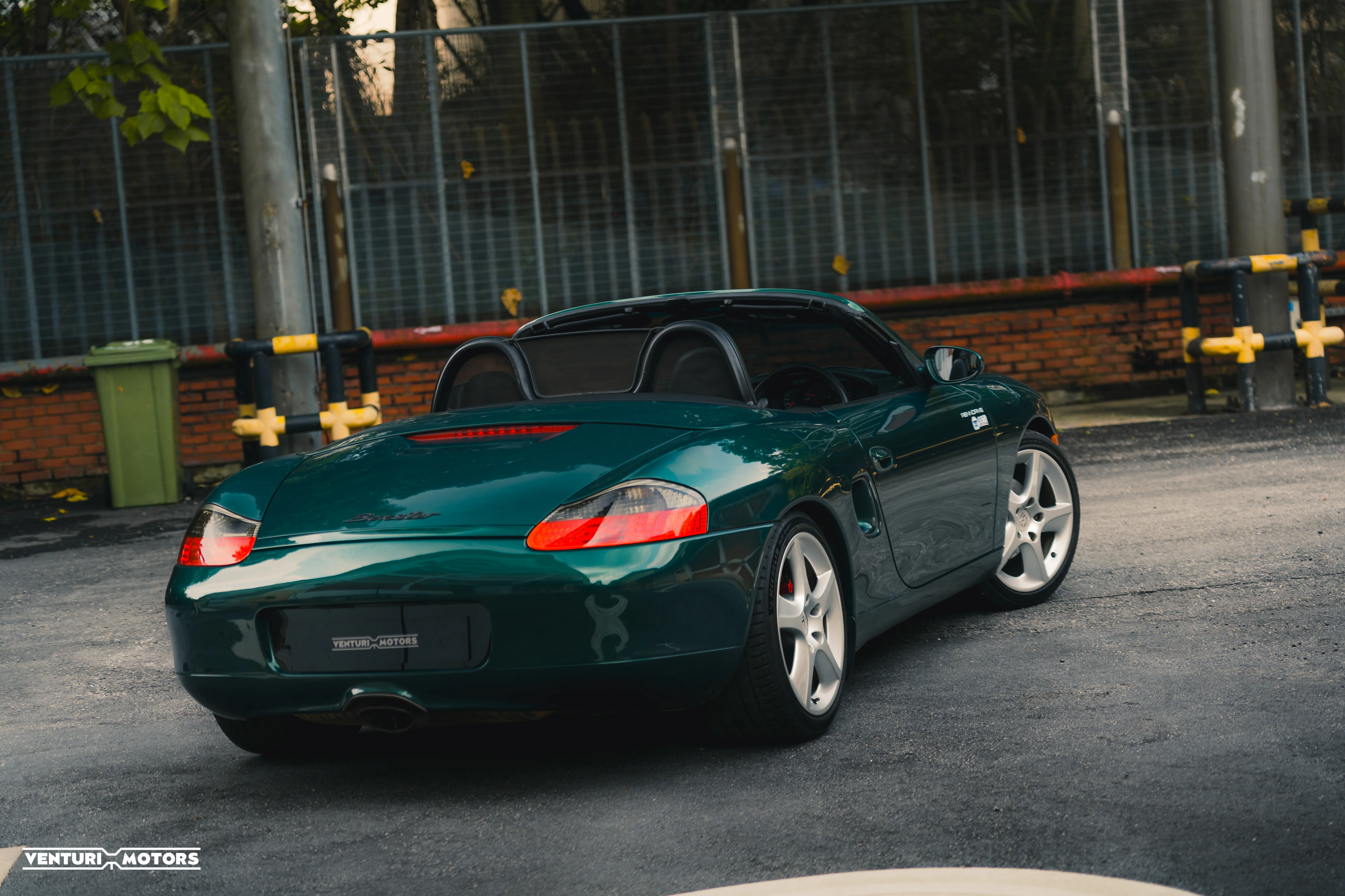 Shown here is a 2003 Porsche 986 Boxster, presented in the elegant and seldom-seen shade of Wimbledon Green, a colour that subtly elevates the car’s timeless silhouette while standing apart from the more conventional palettes seen in the market. Paired with 996 Sport Techno wheels, the overall stance carries a purposeful yet understated presence, echoing Porsche’s design language of the era.