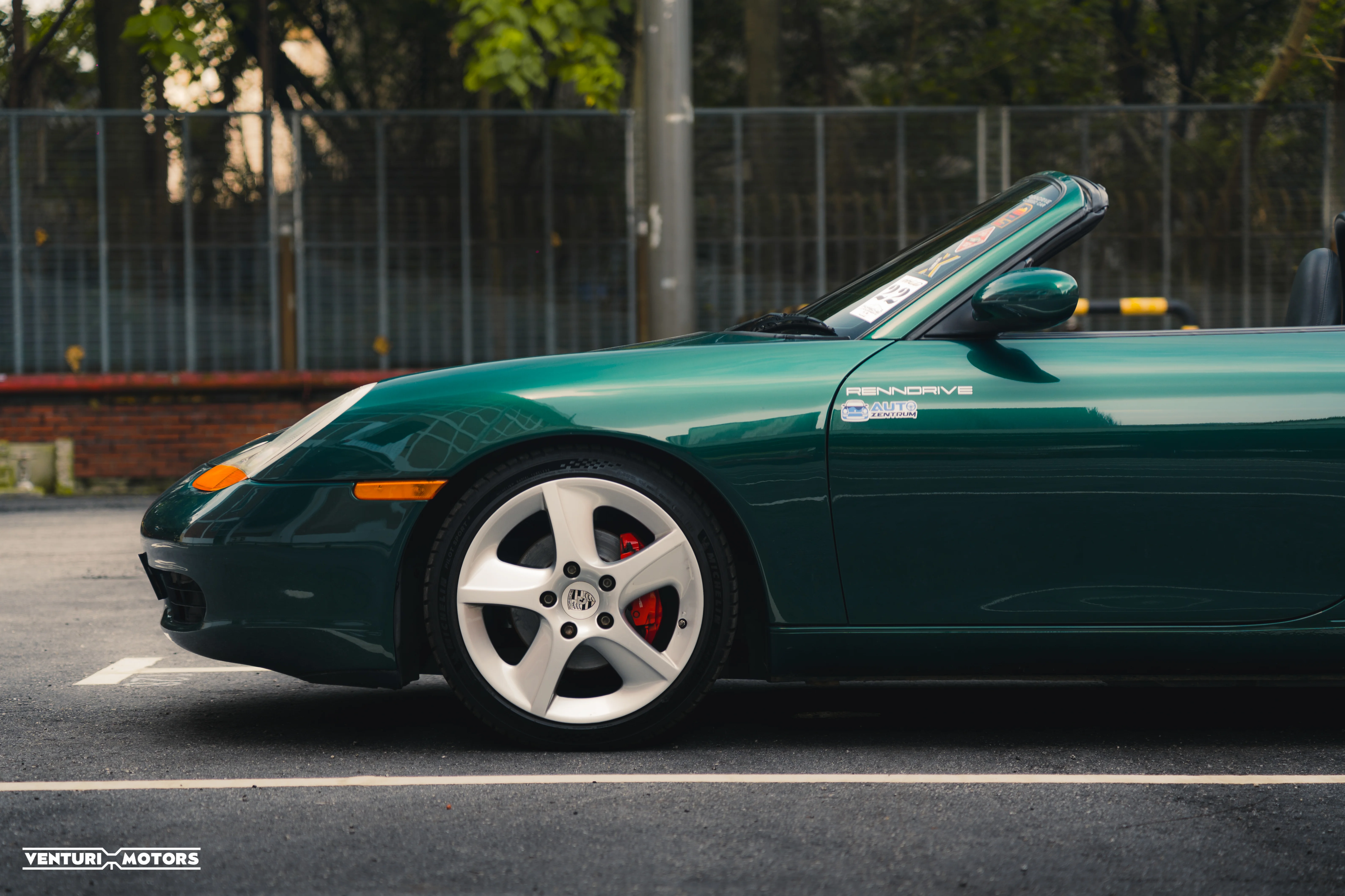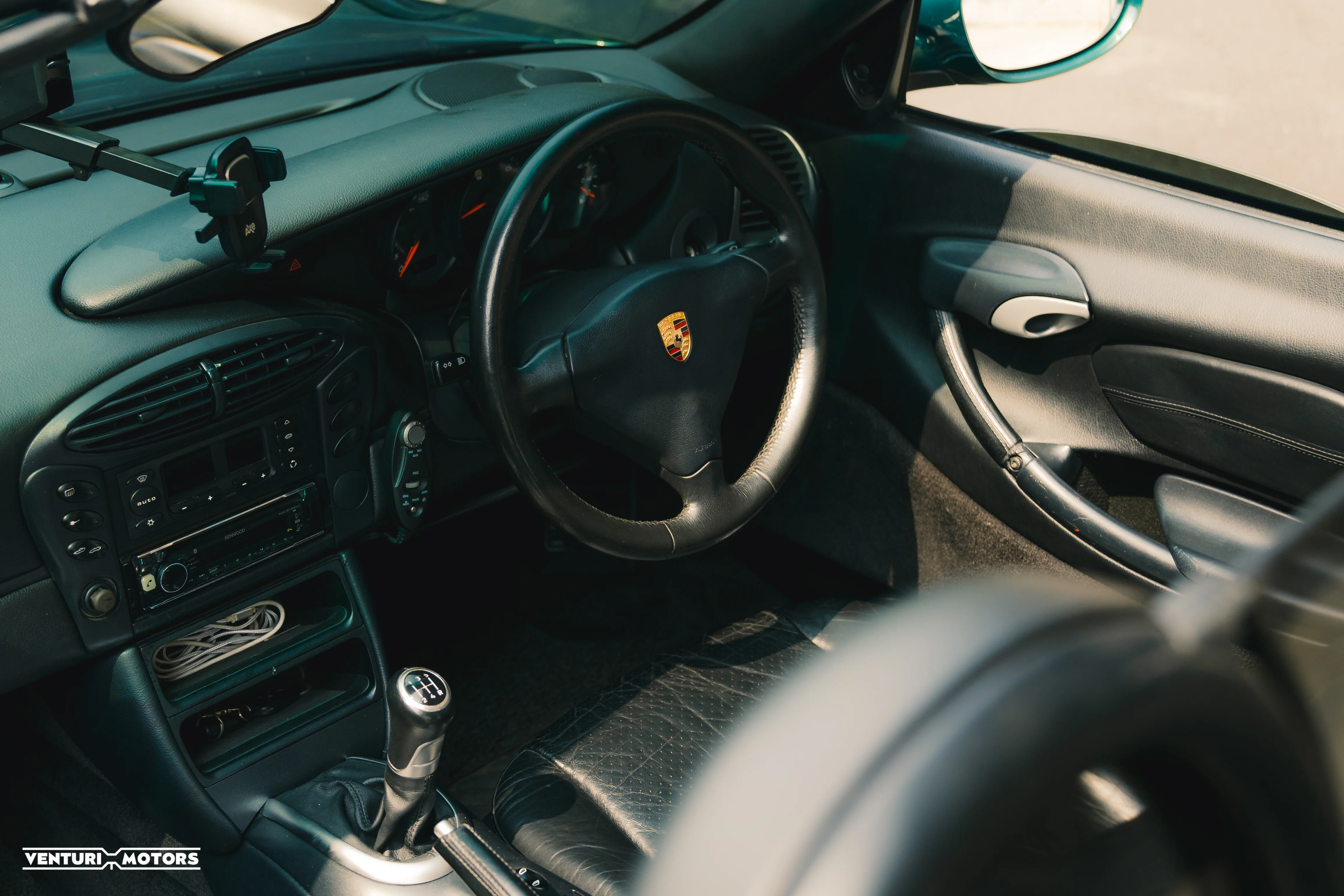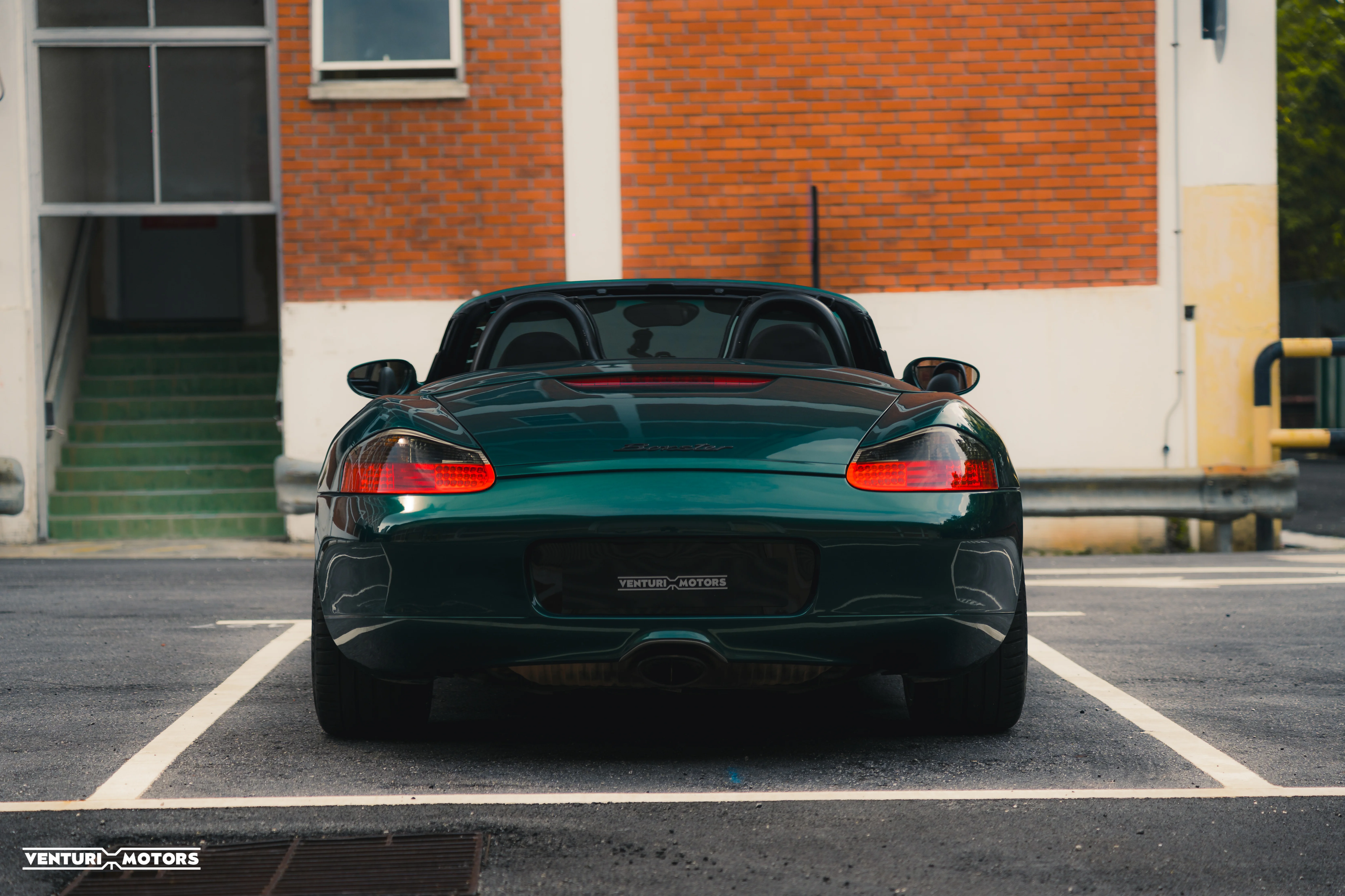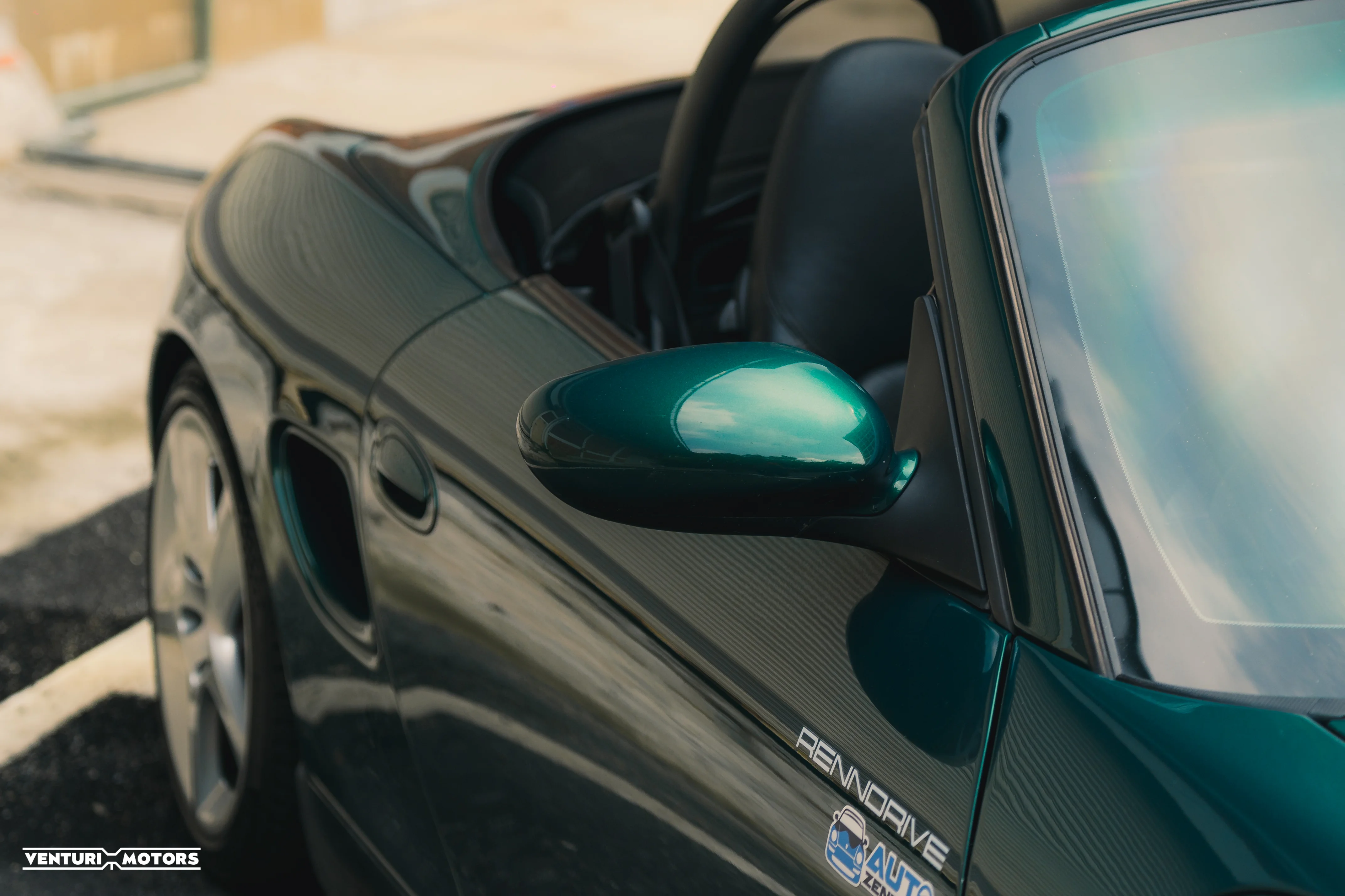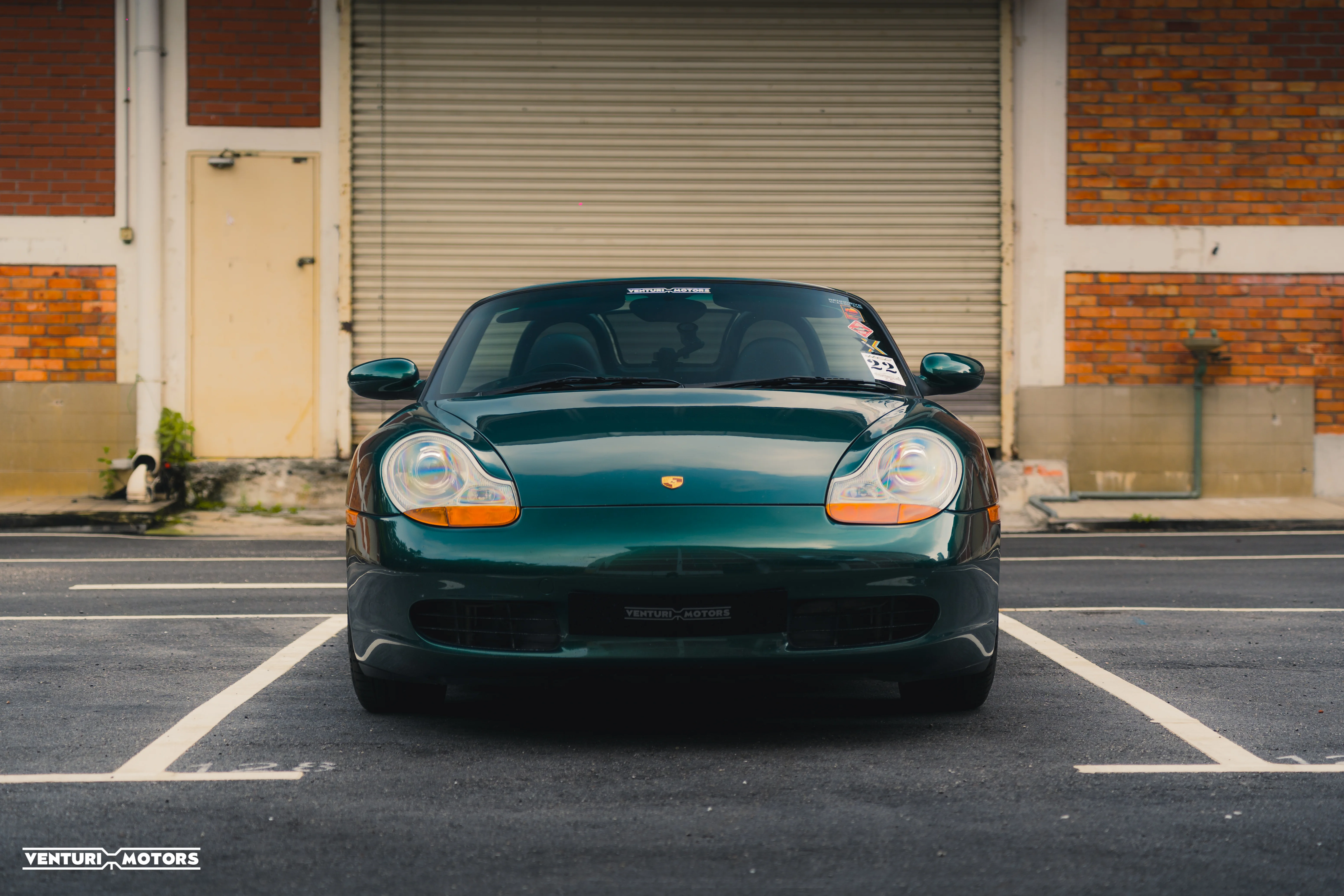 Shown here is a 2003 Porsche 986 Boxster, presented in the elegant and seldom-seen shade of Wimbledon Green, a colour that subtly elevates the car’s timeless silhouette while standing apart from the more conventional palettes seen in the market. Paired with 996 Sport Techno wheels, the overall stance carries a purposeful yet understated presence, echoing Porsche’s design language of the era.