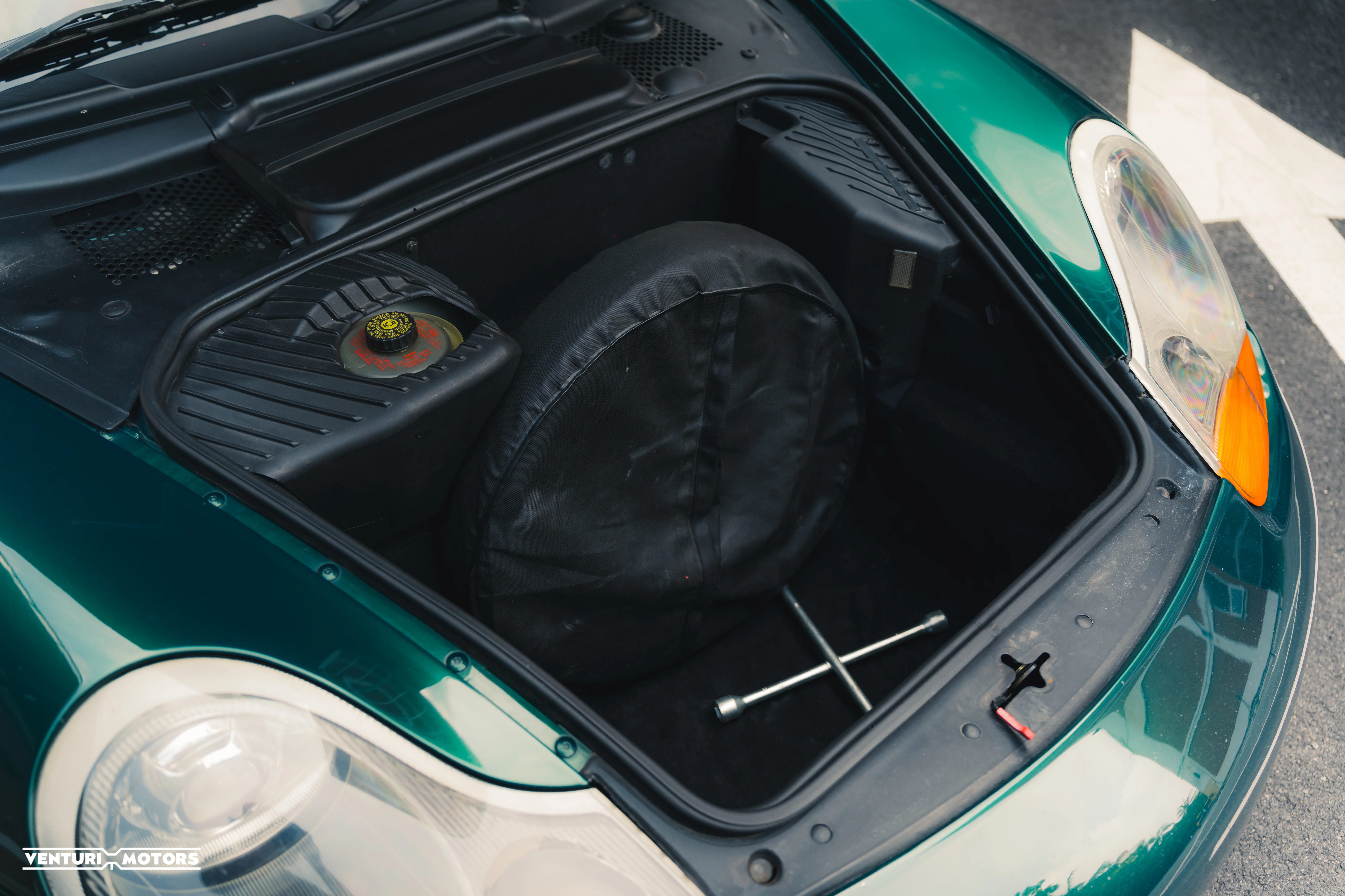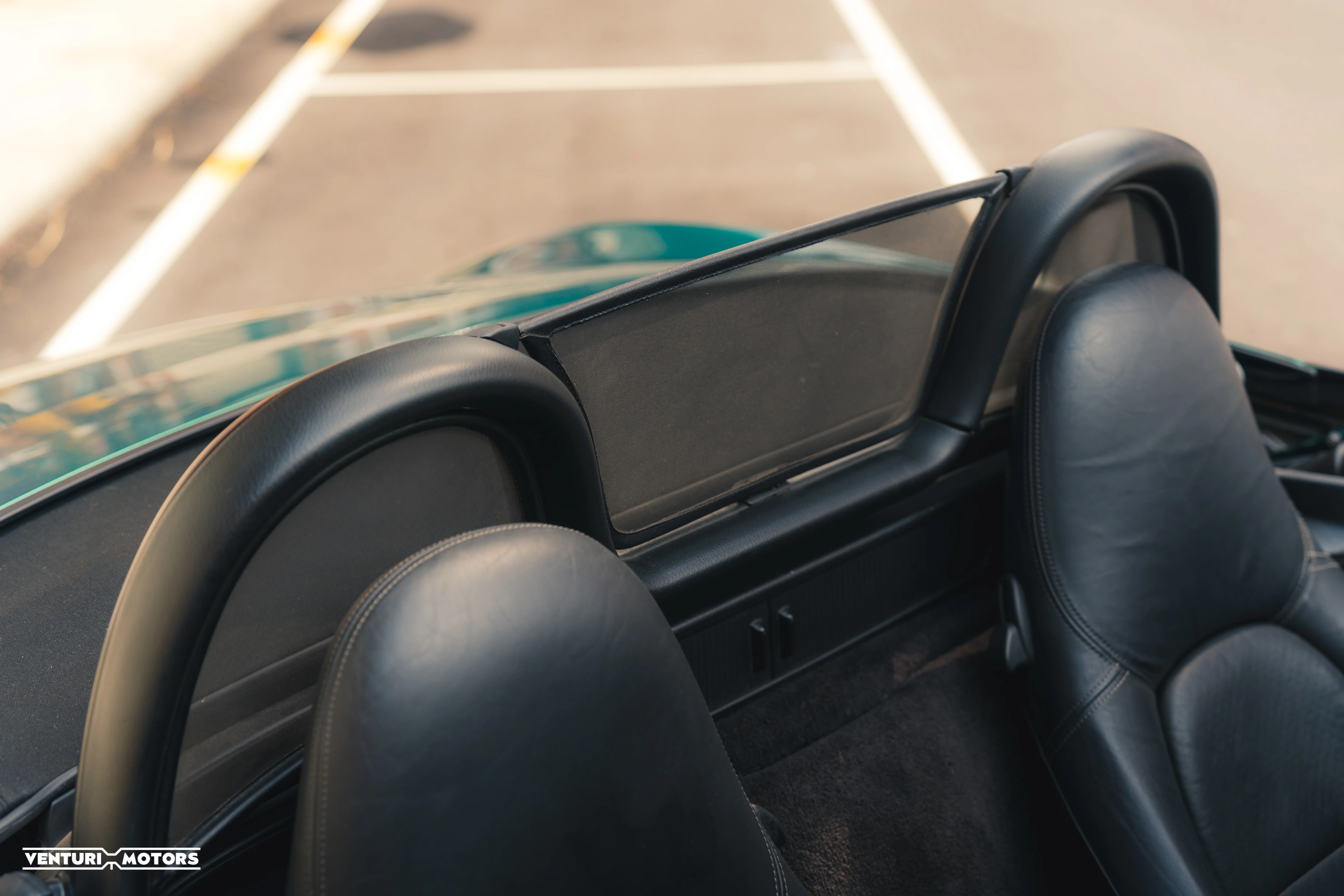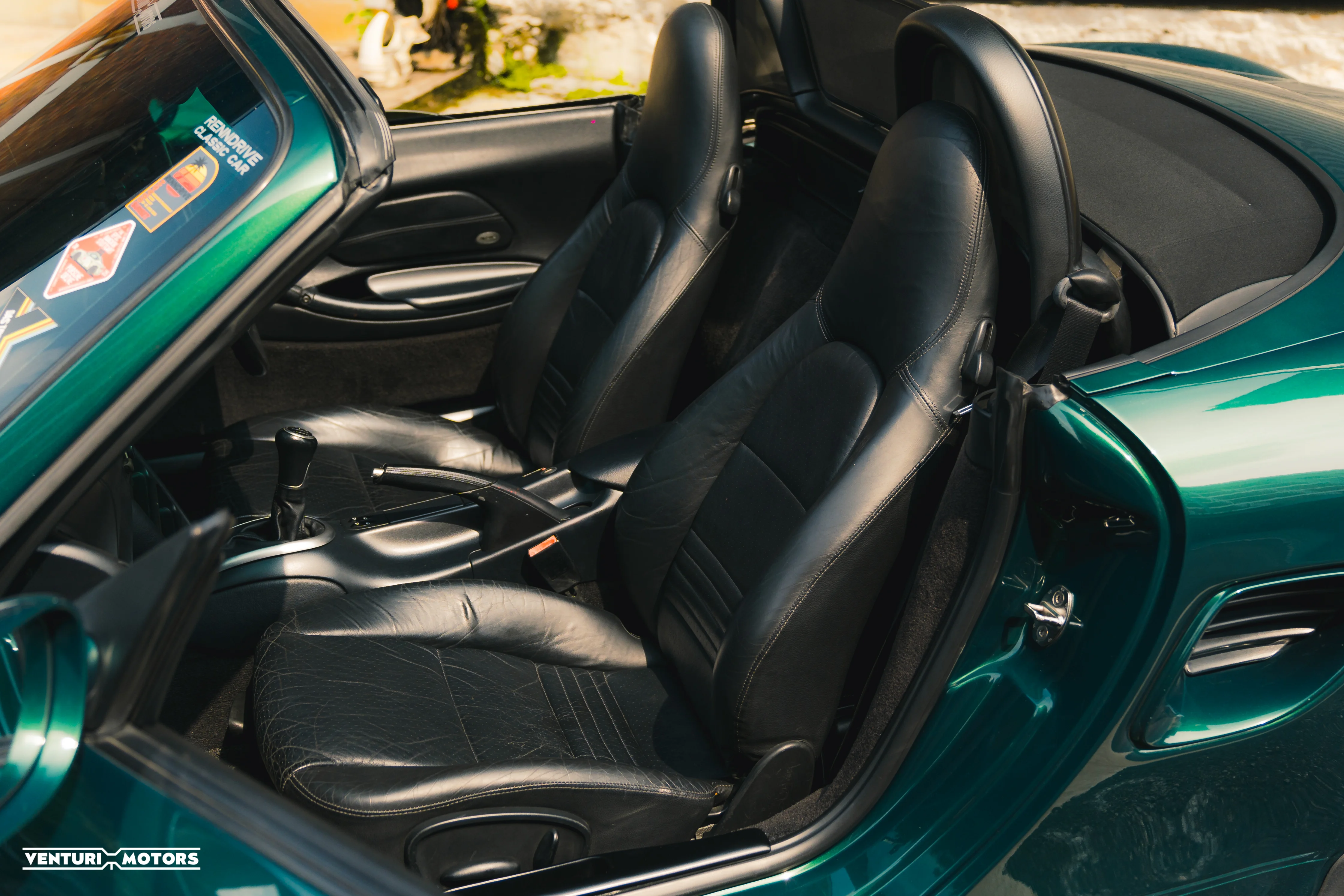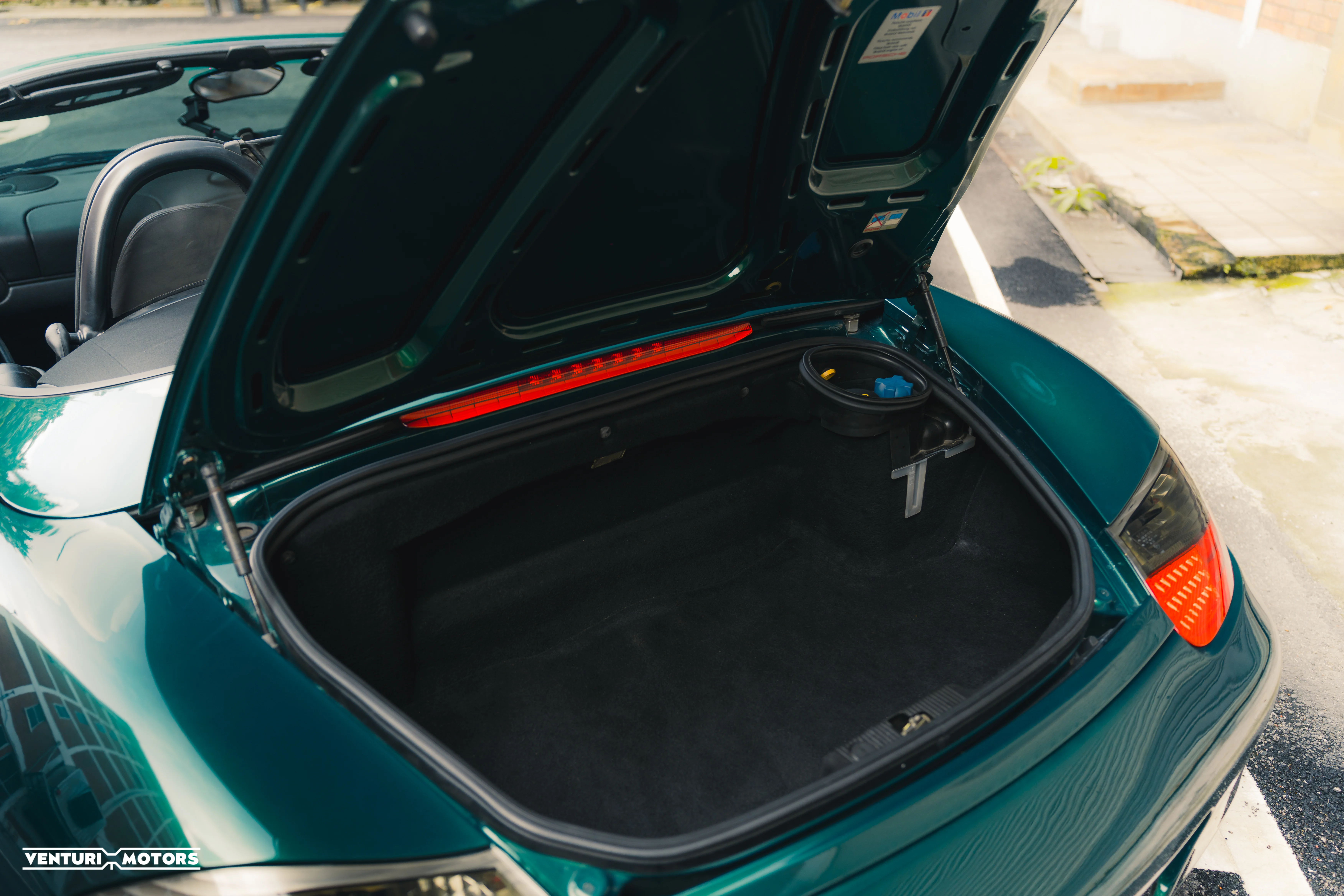 Shown here is a 2003 Porsche 986 Boxster, presented in the elegant and seldom-seen shade of Wimbledon Green, a colour that subtly elevates the car’s timeless silhouette while standing apart from the more conventional palettes seen in the market. Paired with 996 Sport Techno wheels, the overall stance carries a purposeful yet understated presence, echoing Porsche’s design language of the era.