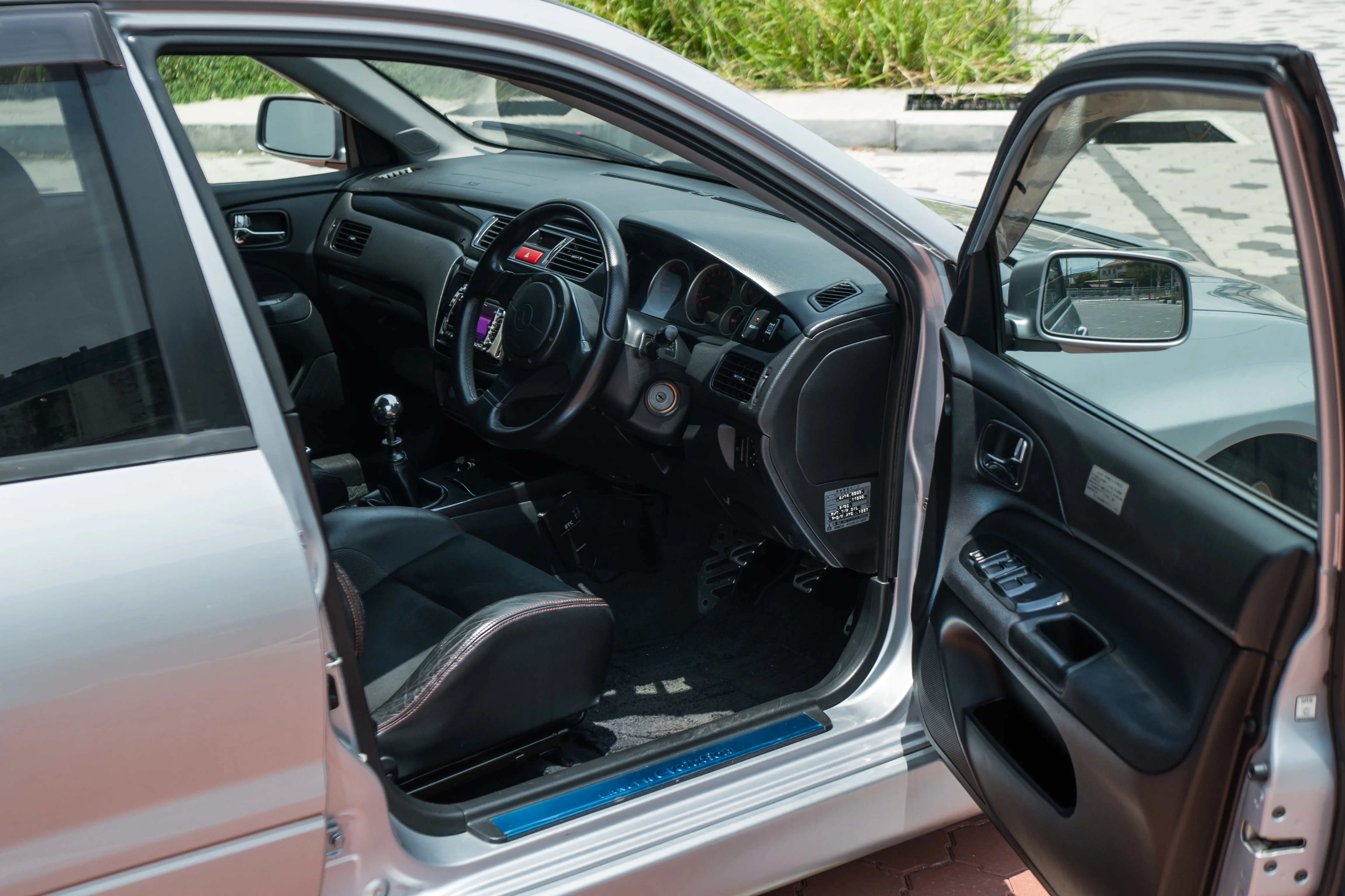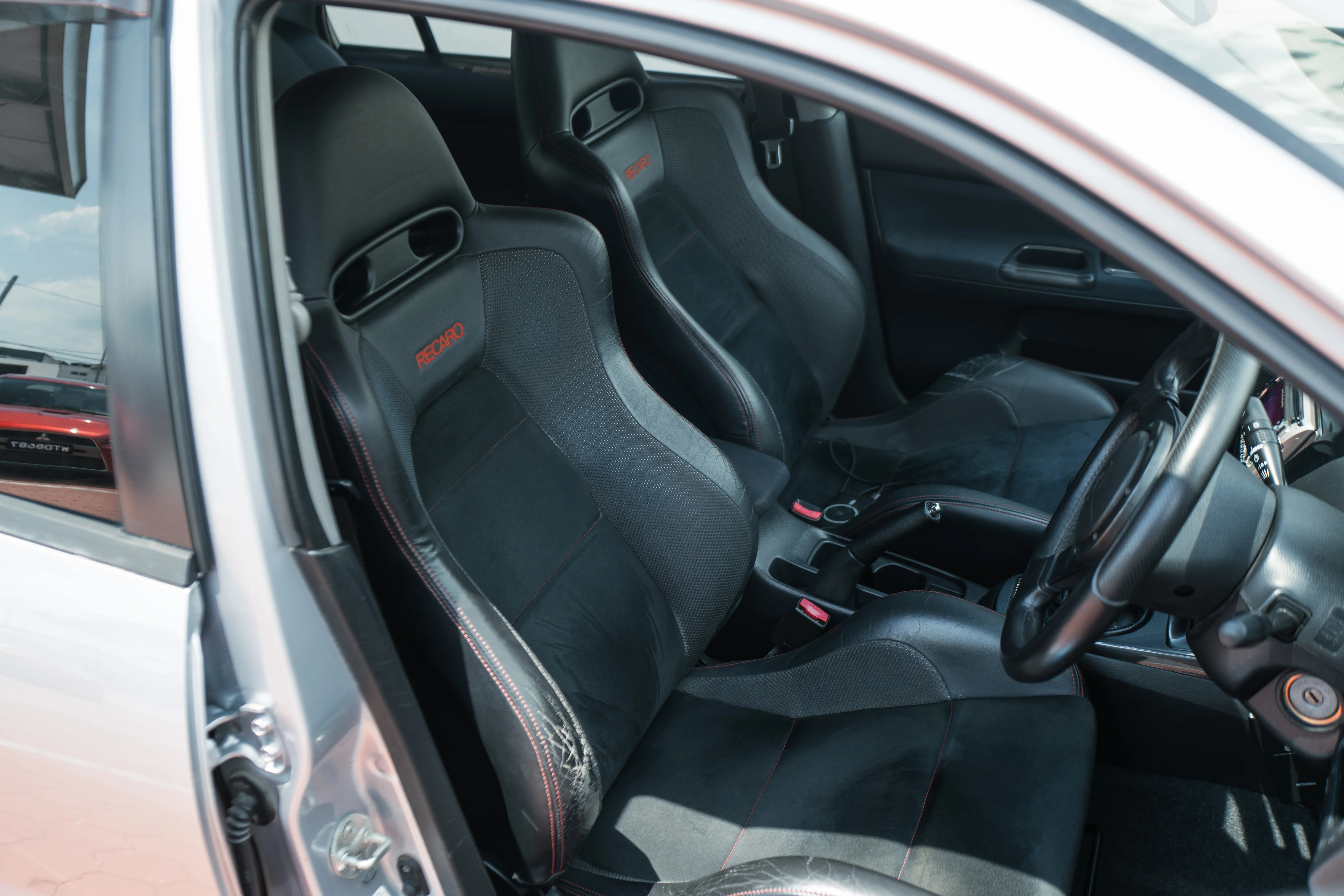Step inside, and it’s clear the Evo 9 MR was never about luxury — it was about control. Recaro bucket seats hold you firmly in place, the thick-rimmed steering wheel feels purposeful, and the aftermarket shifter sits exactly where your hand expects it. The cabin is minimalist, driver-centric, and built for focus, reminding you with every glance that this is a car bred for the rally stage, not the showroom floor.