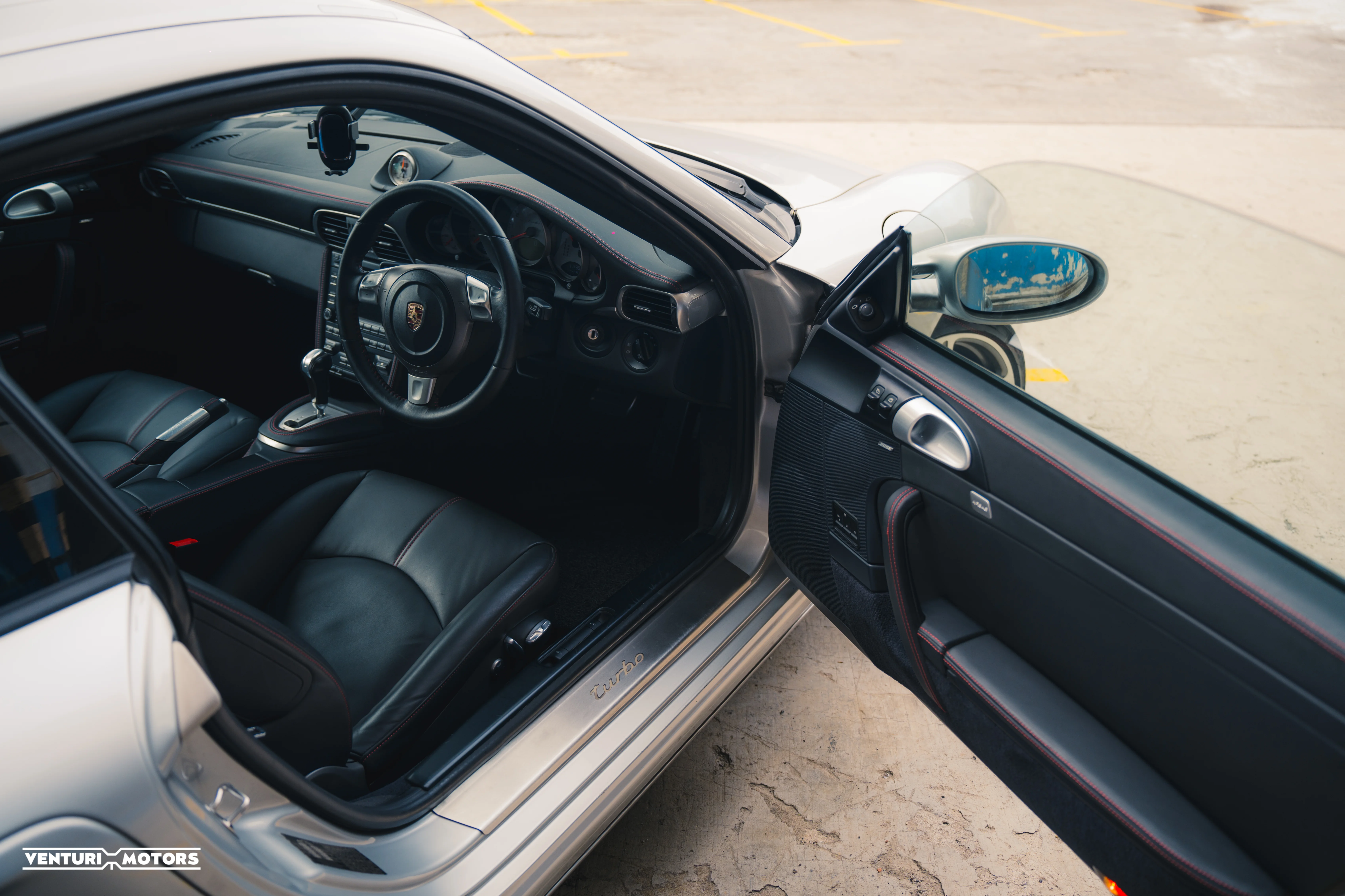 This particular example is a 2009 Porsche 911 (997.1) Turbo, presented in the timeless shade of Arctic Silver Metallic. Understated yet purposeful, the finish highlights the wide-bodied stance, signature side intakes, and iconic Turbo silhouette, subtle cues that distinguish it within the 911 hierarchy.