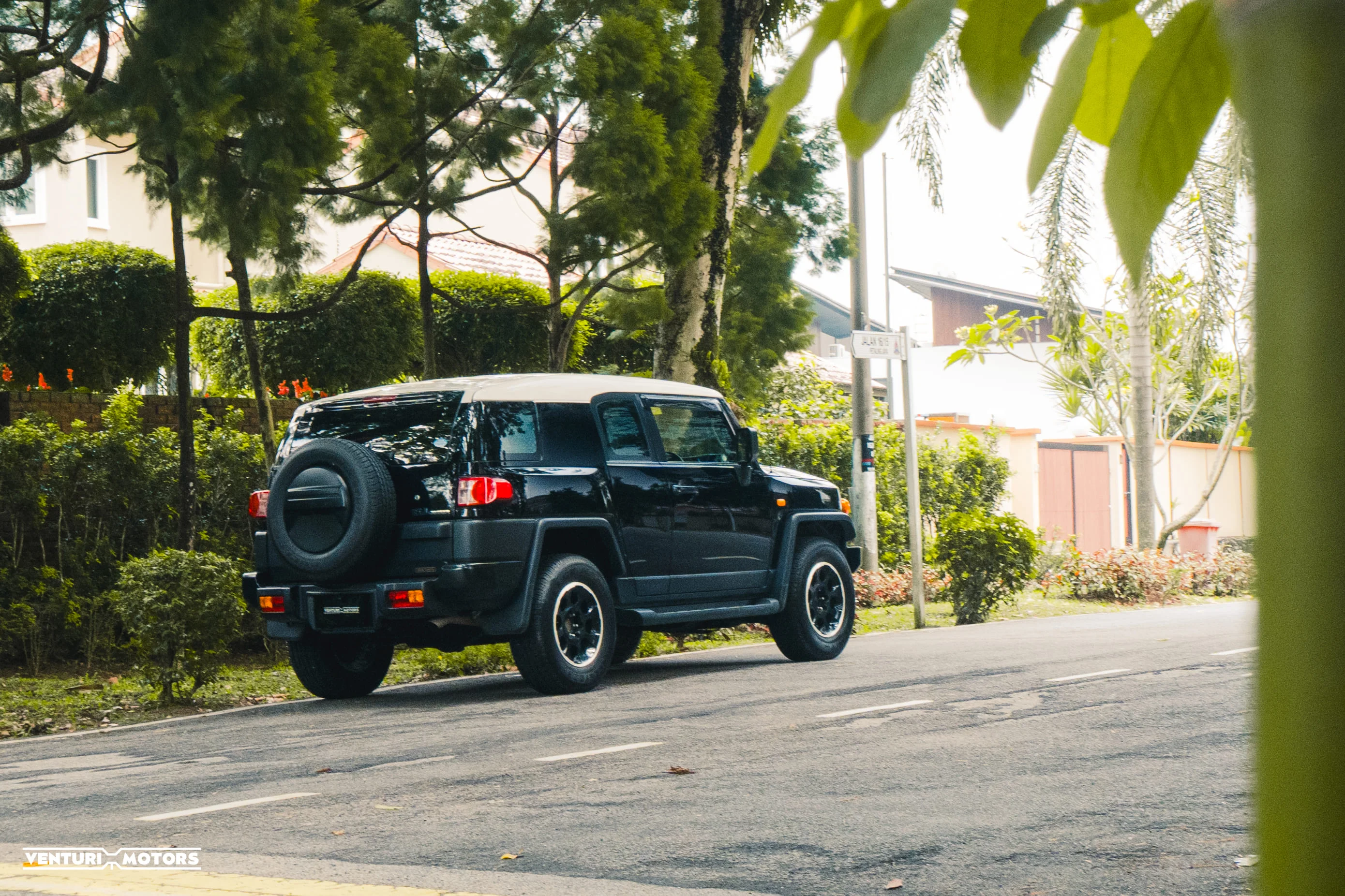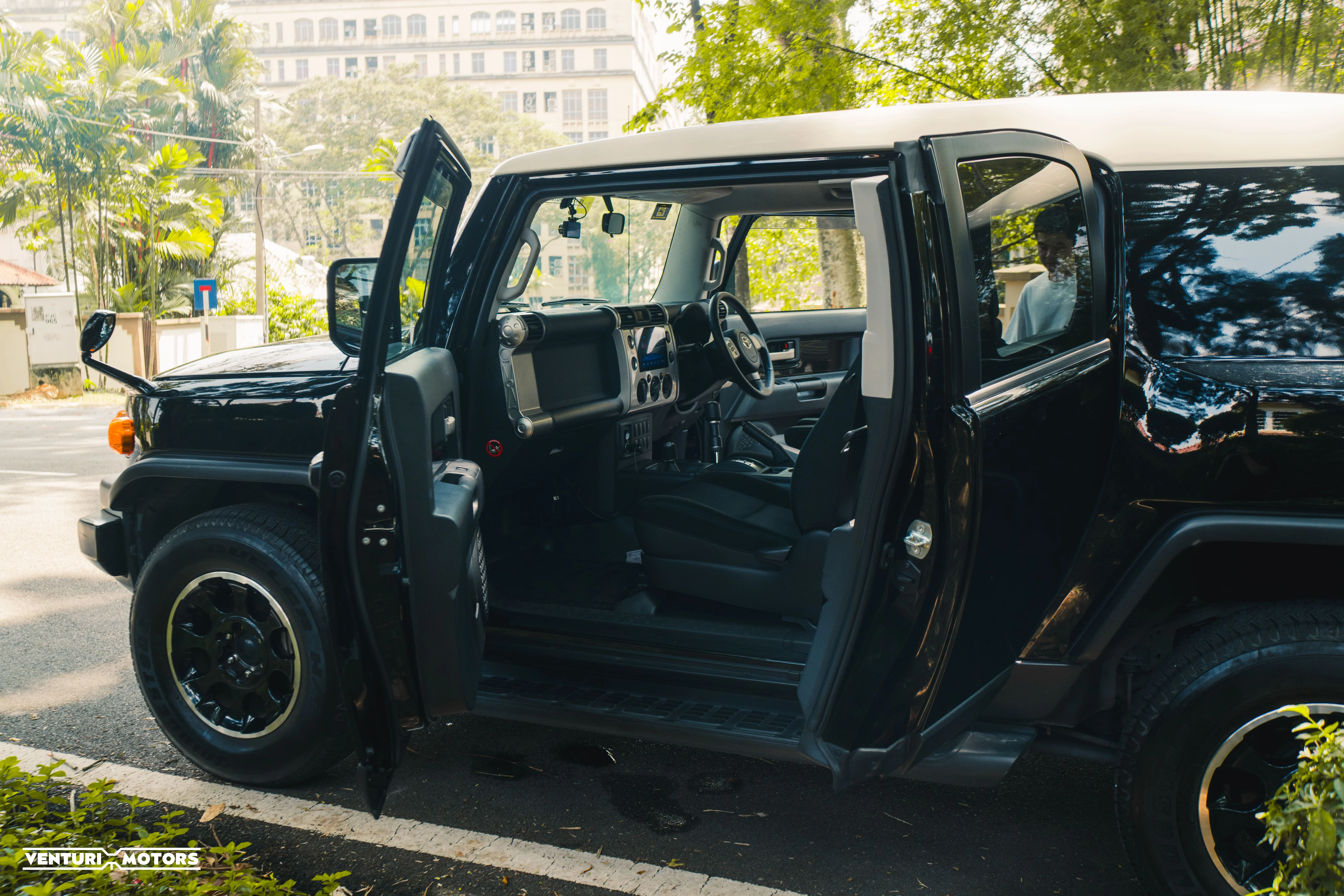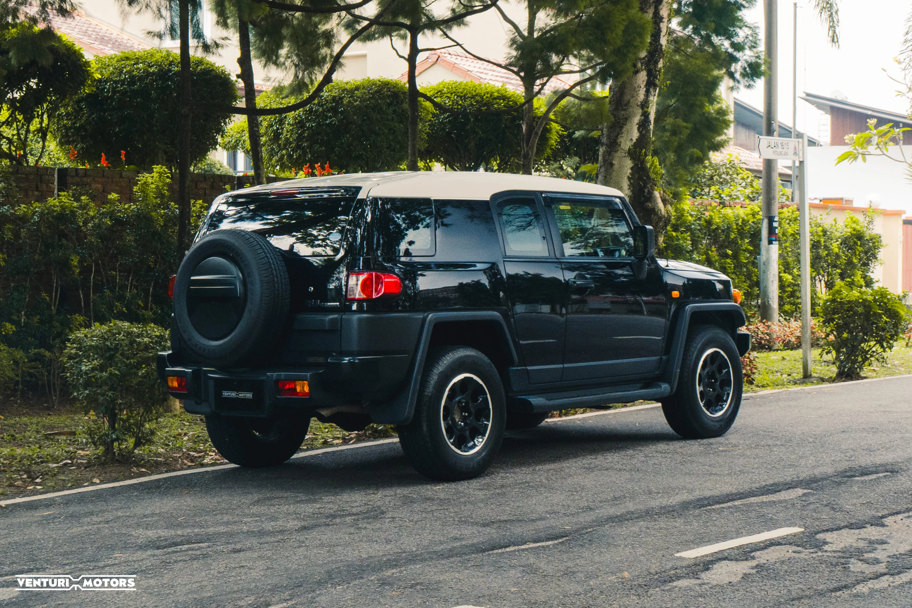 Finished in black with its signature white roof, the stance is unapologetically bold. Big arches, upright glass, short overhangs — everything about it says it’s ready. This example remains **completely bone stock**, preserving the original engineering and balance Toyota intended.