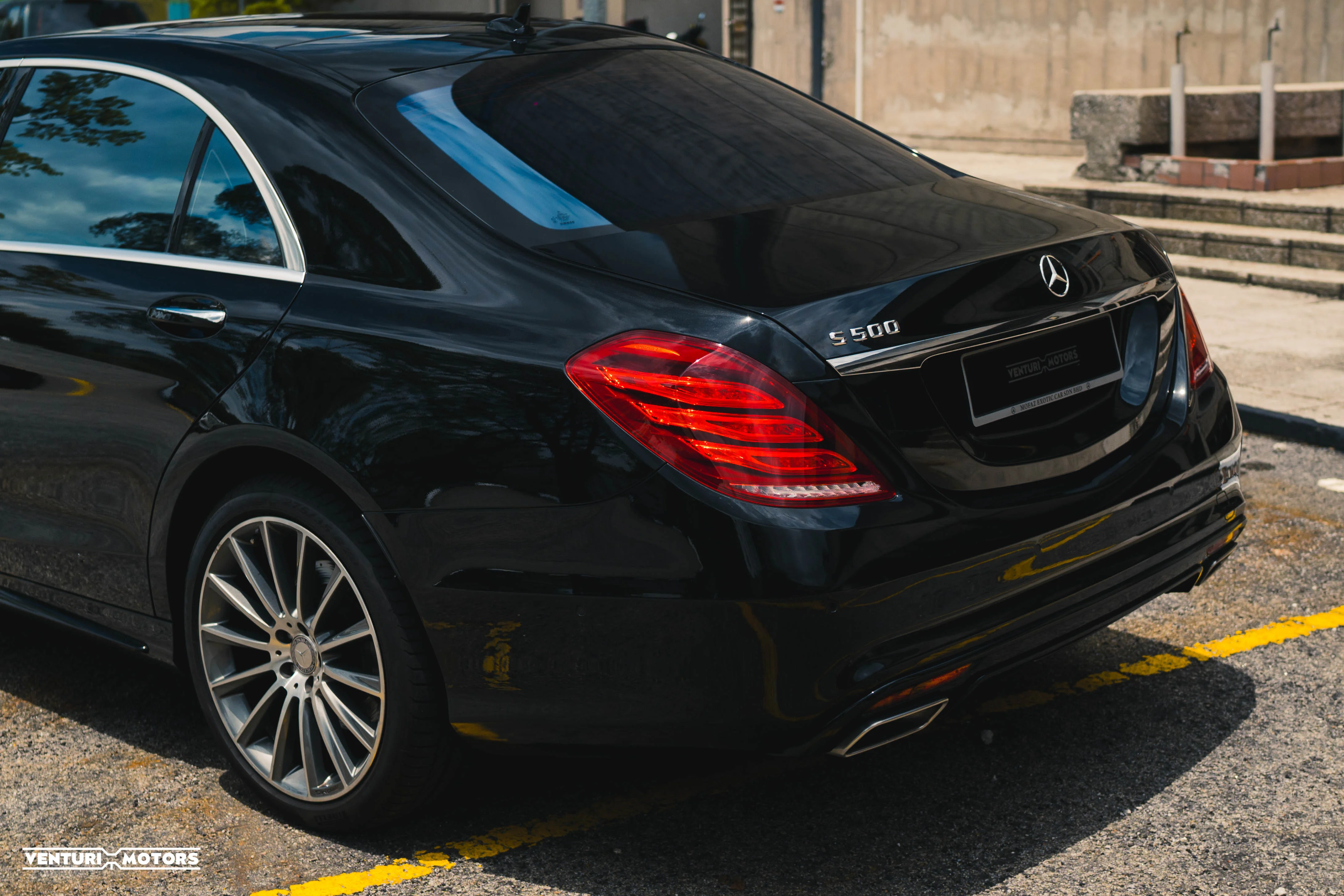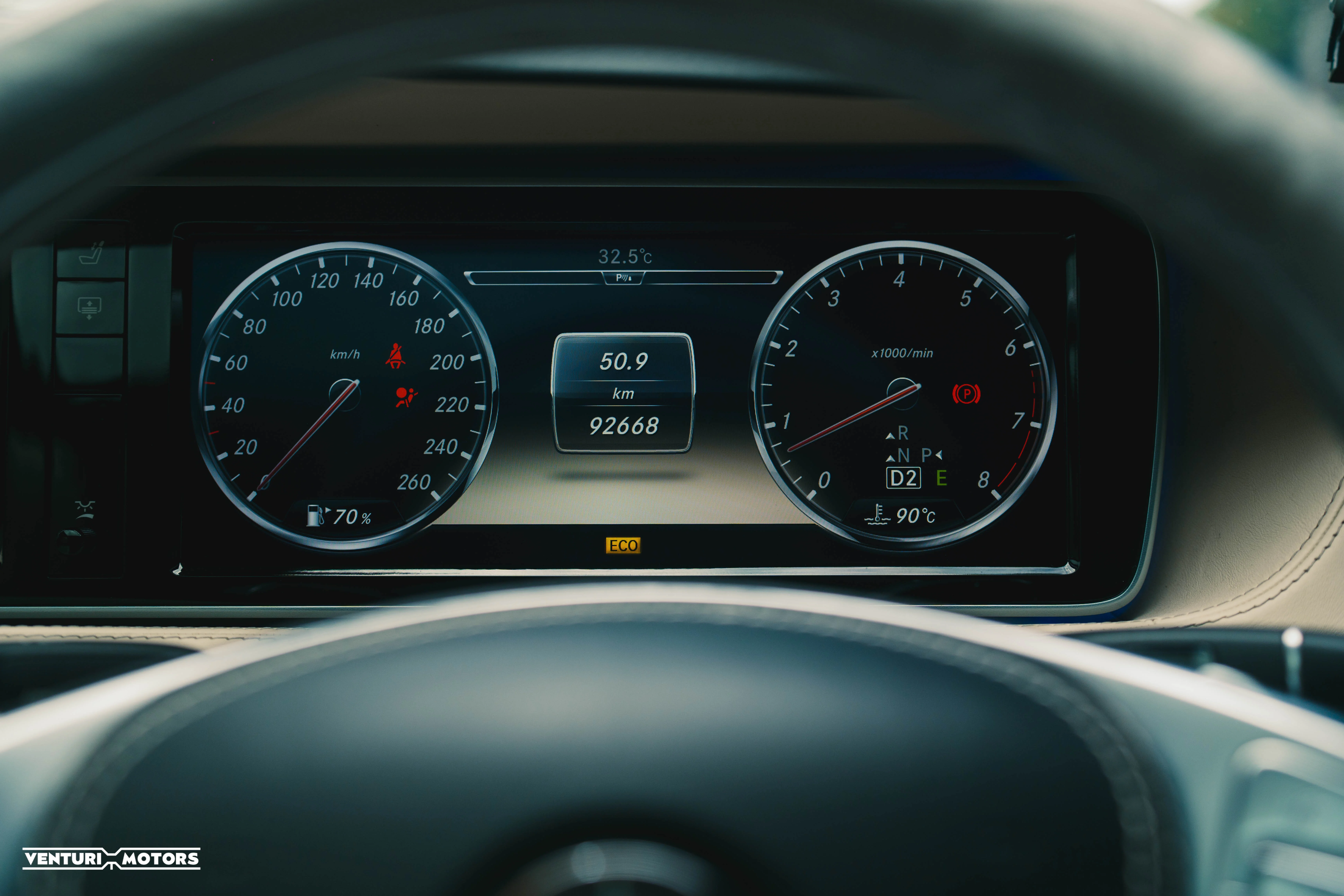 This 2014 S500L, a long-wheelbase W222, exemplifies sophistication. Finished in Magnetite Black Metallic, its sleek silhouette is complemented by AMG multi-spoke alloy wheels, exuding presence and prestige. Inside, the porcelain Nappa leather interior offers a striking contrast, providing supreme comfort with spacious legroom, dual screens, and a premium Burmester sound system.