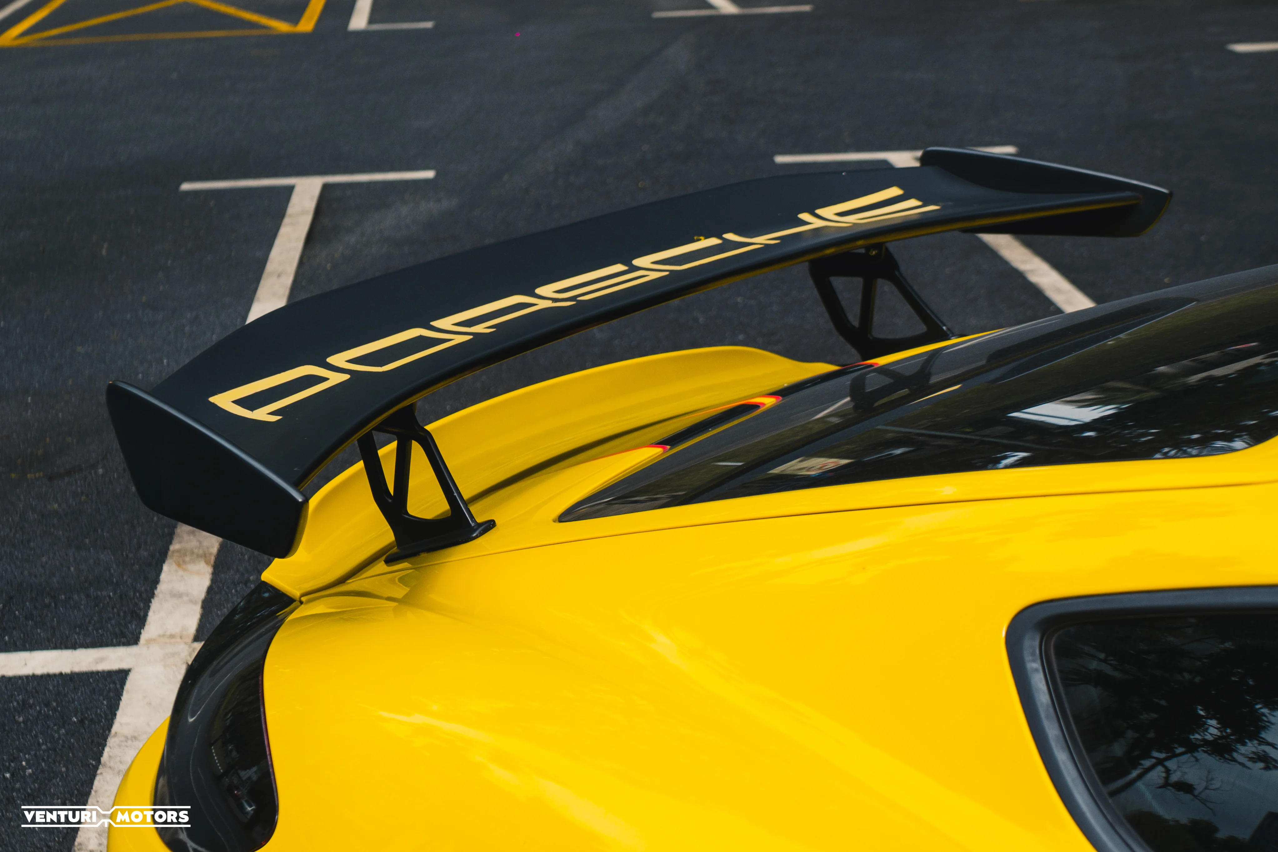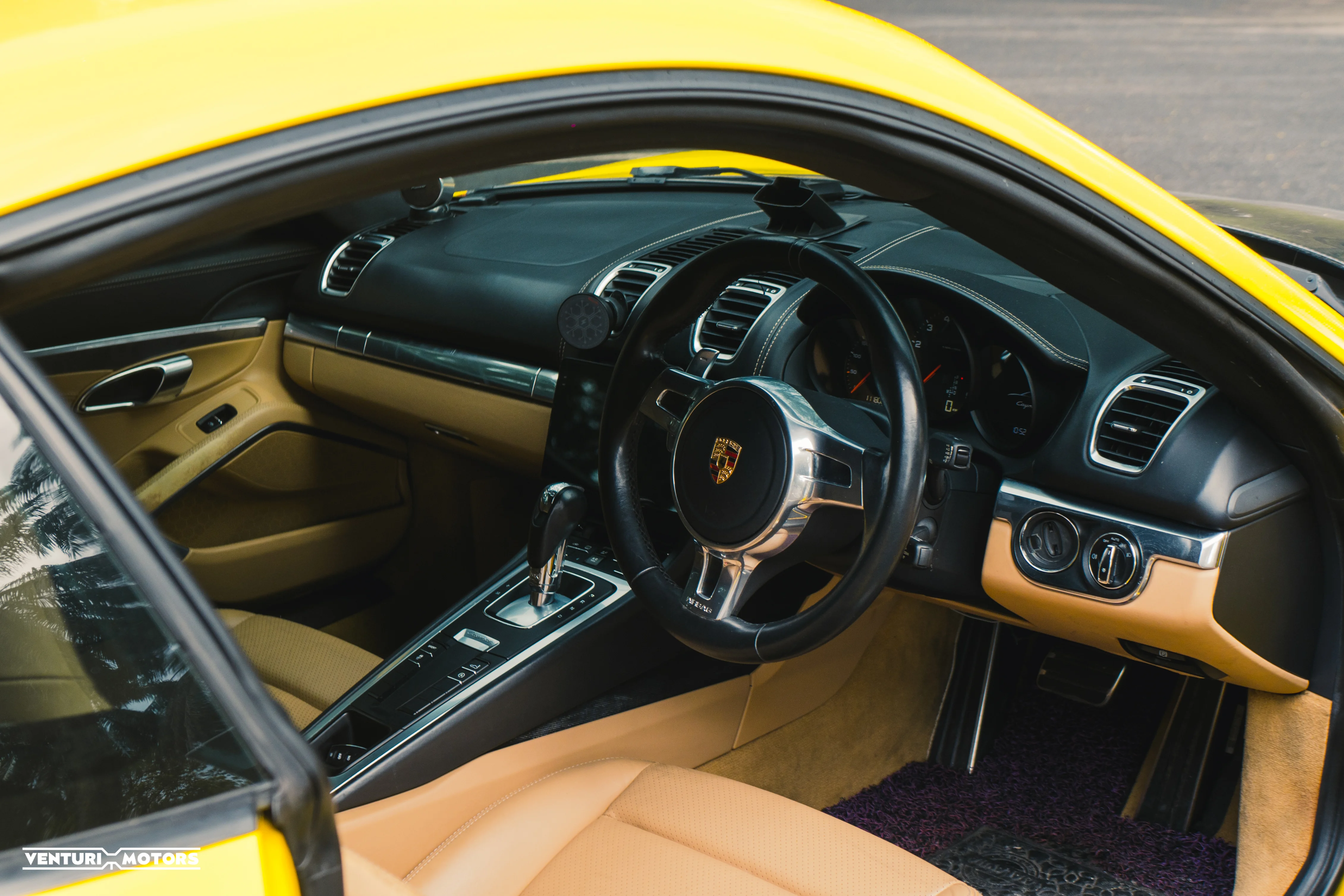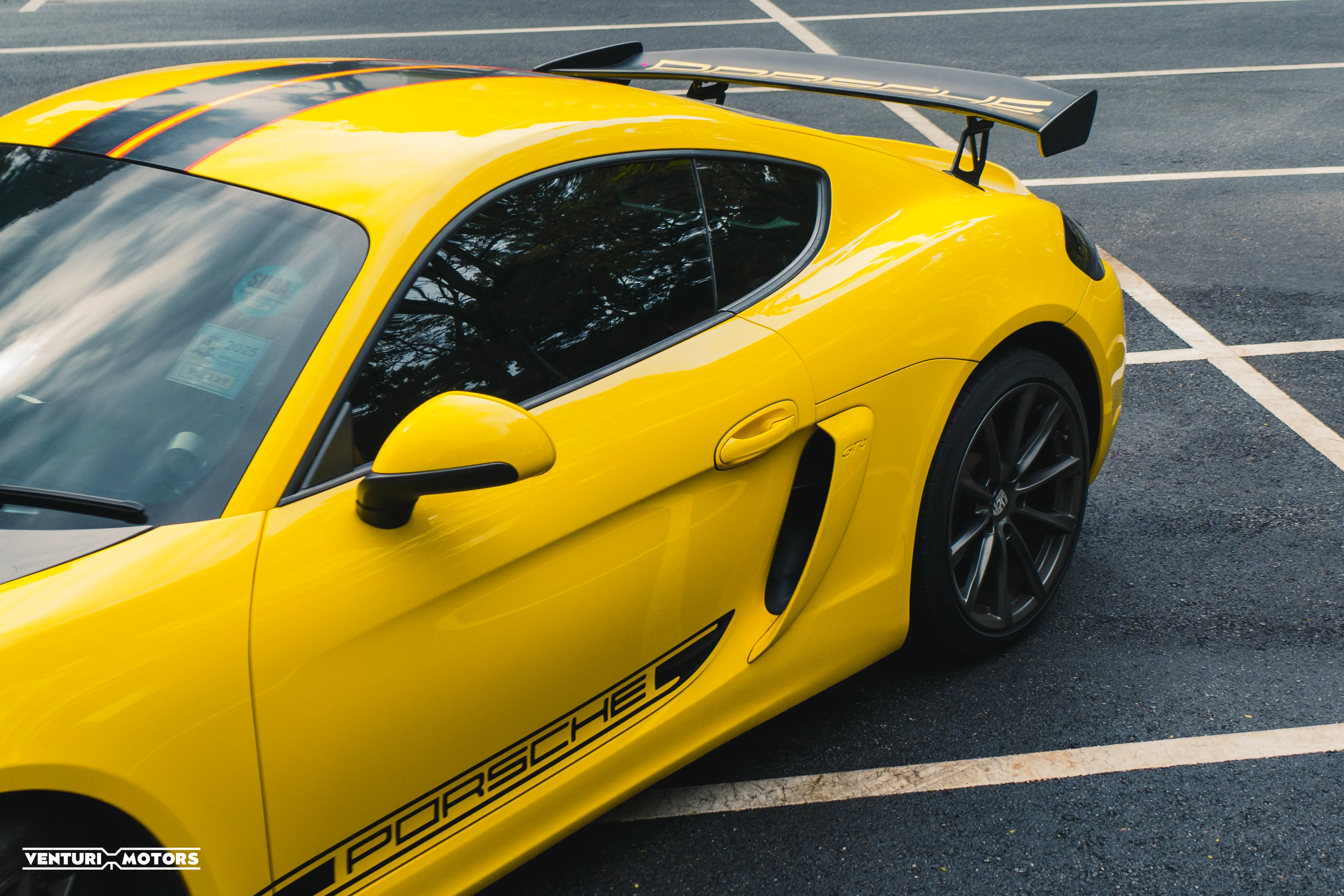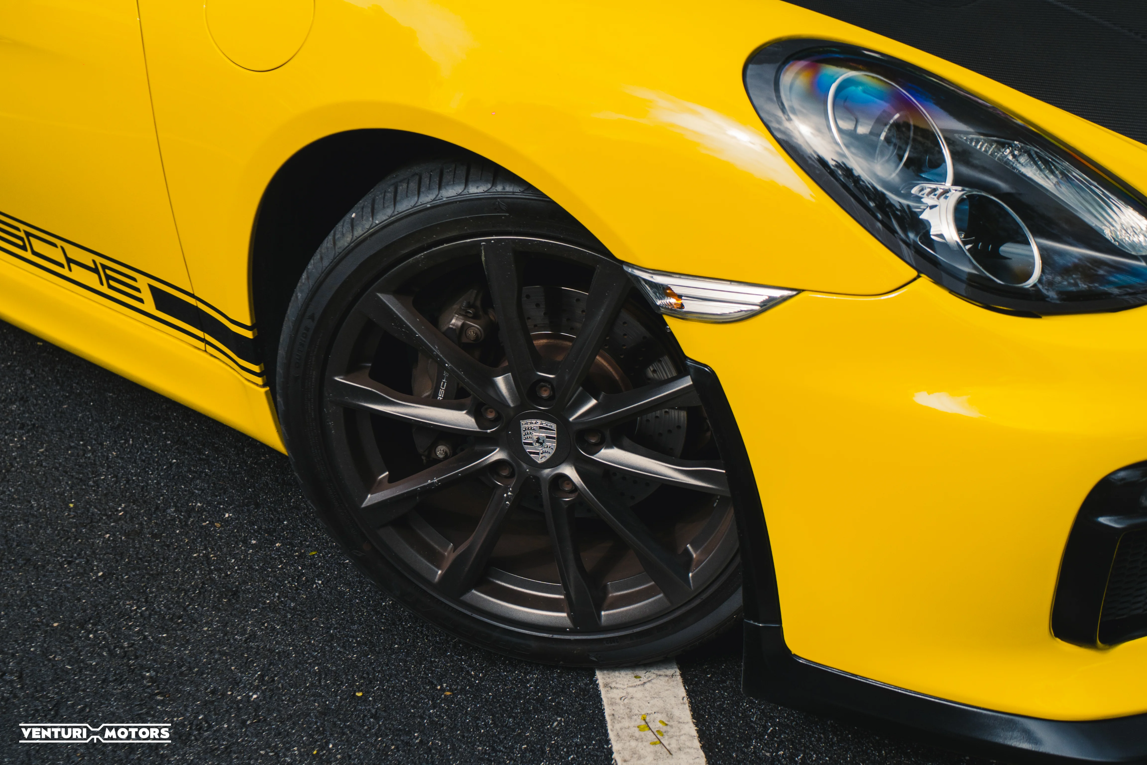This particular example is a 2014 Porsche Cayman 981, repainted in the iconic Speed Yellow—a colour deeply rooted in Porsche motorsport heritage that amplifies the car’s athletic proportions. The exterior is further elevated with a GT4-style bodykit, giving it a more purposeful stance that blends road-going elegance with track-inspired aggression. Completing the look are 19-inch 718 Cayman wheels finished in black, adding contrast and a modern edge.