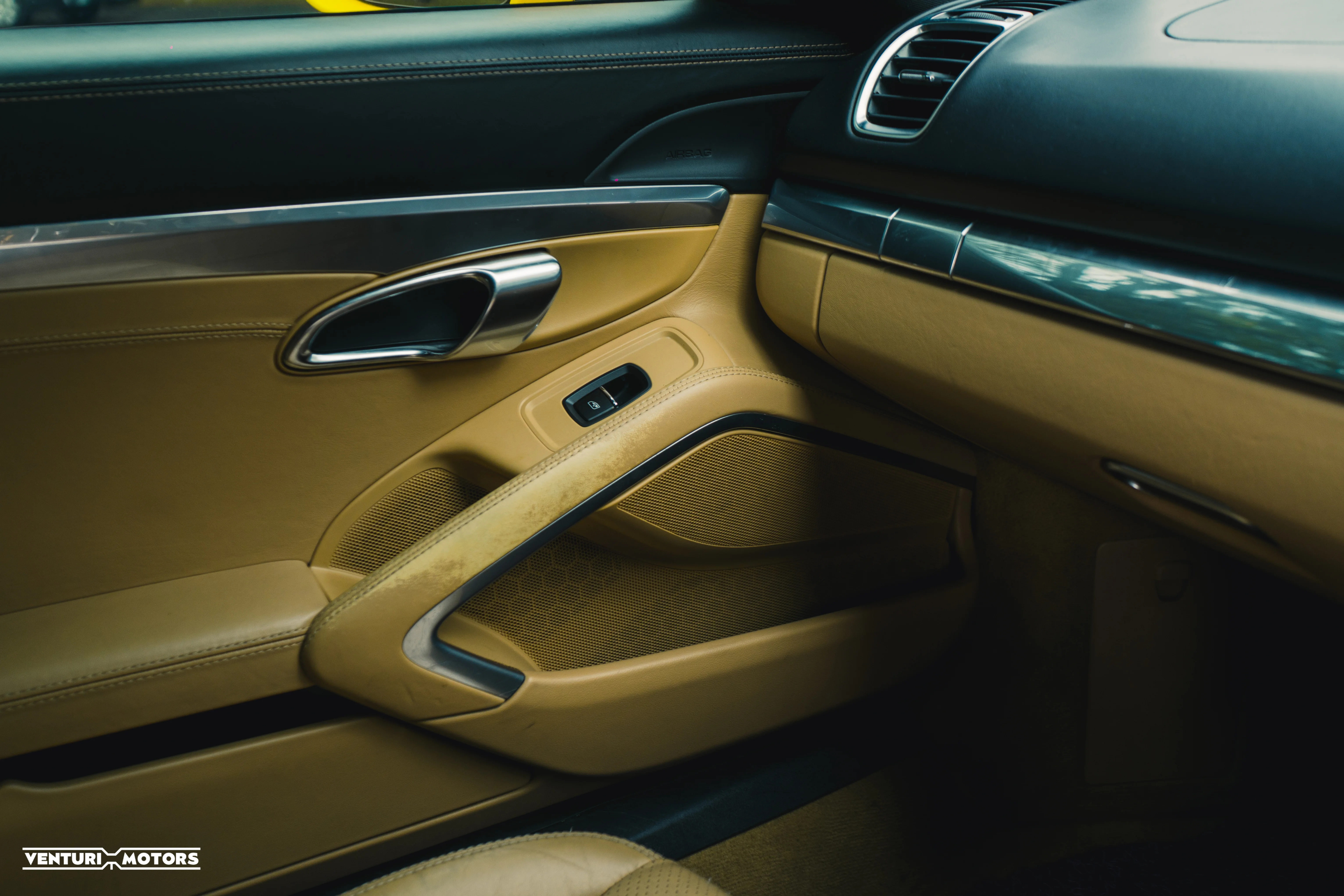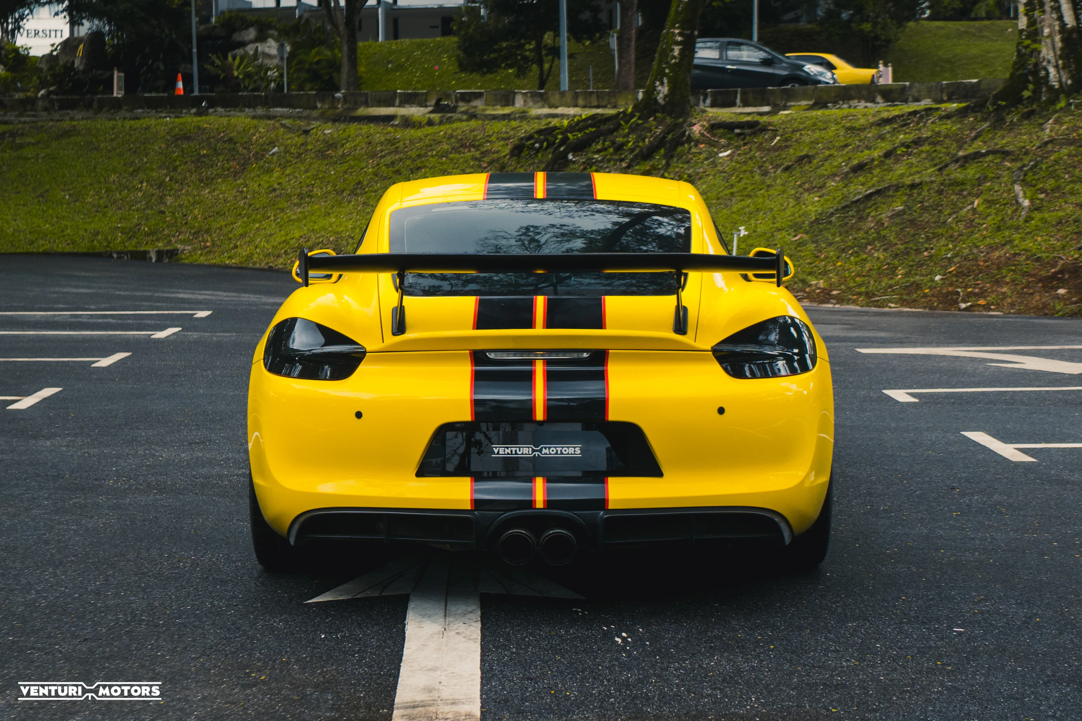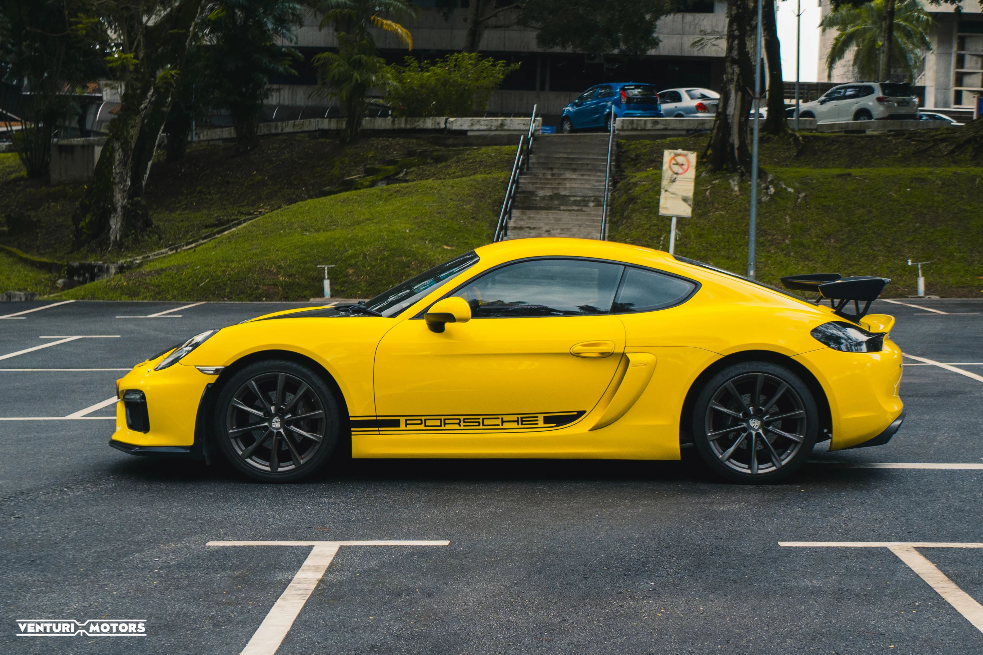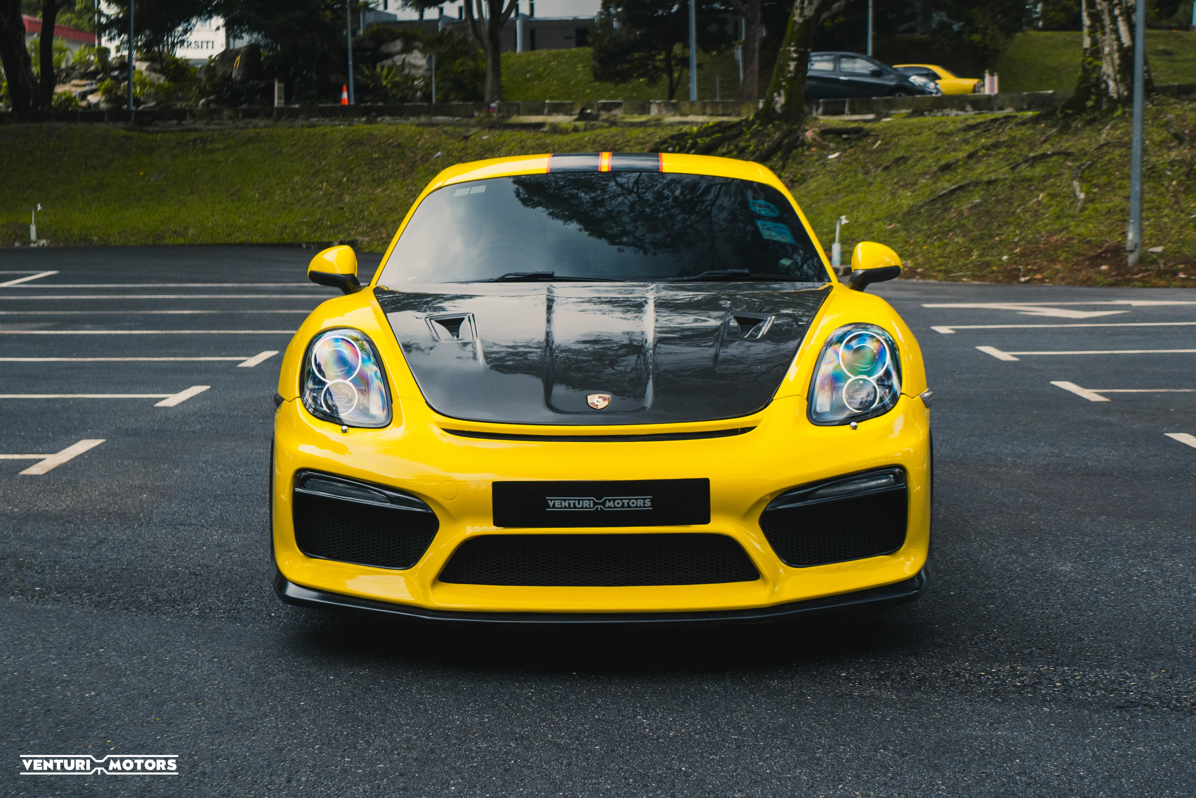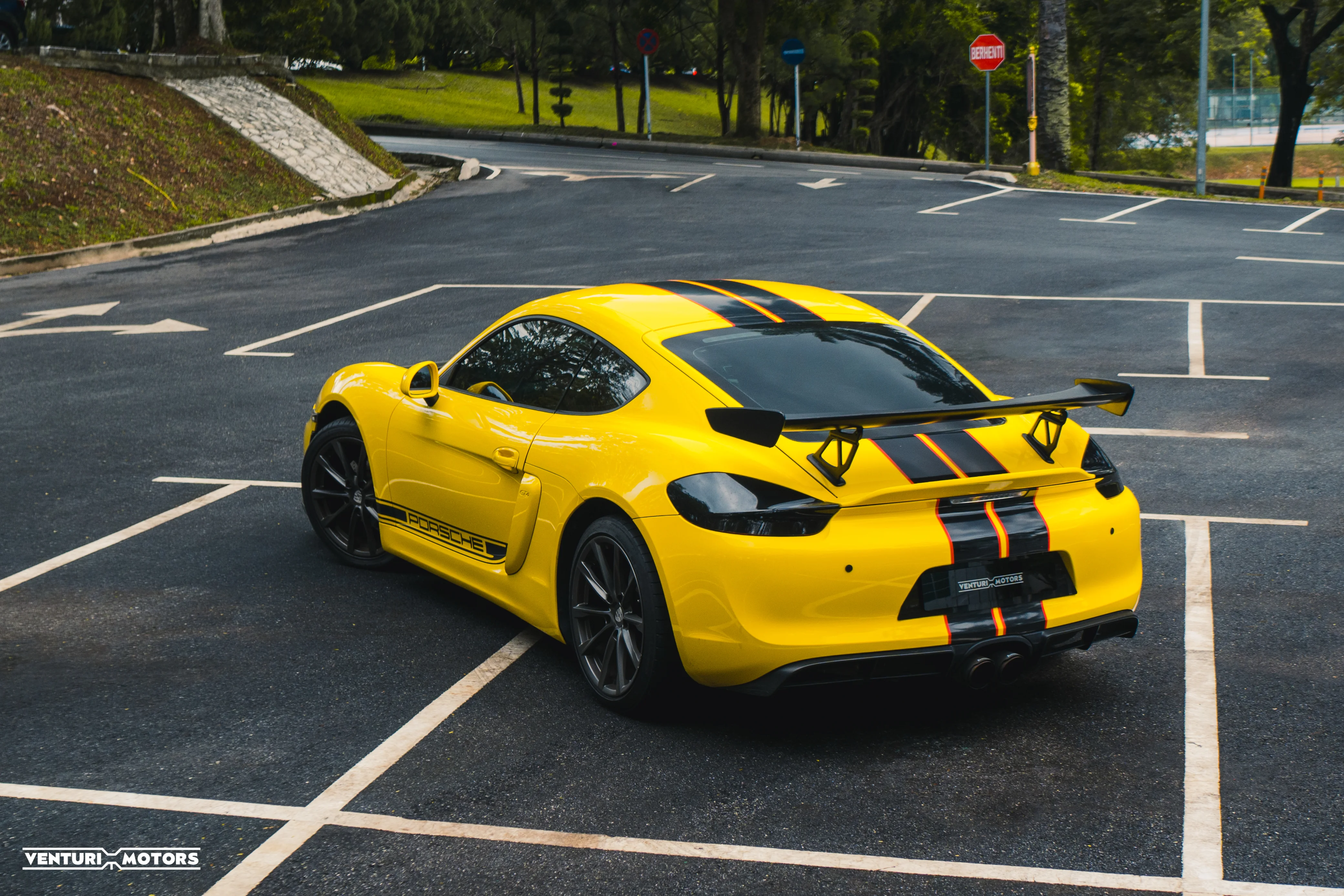 This particular example is a 2014 Porsche Cayman 981, repainted in the iconic Speed Yellow—a colour deeply rooted in Porsche motorsport heritage that amplifies the car’s athletic proportions. The exterior is further elevated with a GT4-style bodykit, giving it a more purposeful stance that blends road-going elegance with track-inspired aggression. Completing the look are 19-inch 718 Cayman wheels finished in black, adding contrast and a modern edge.