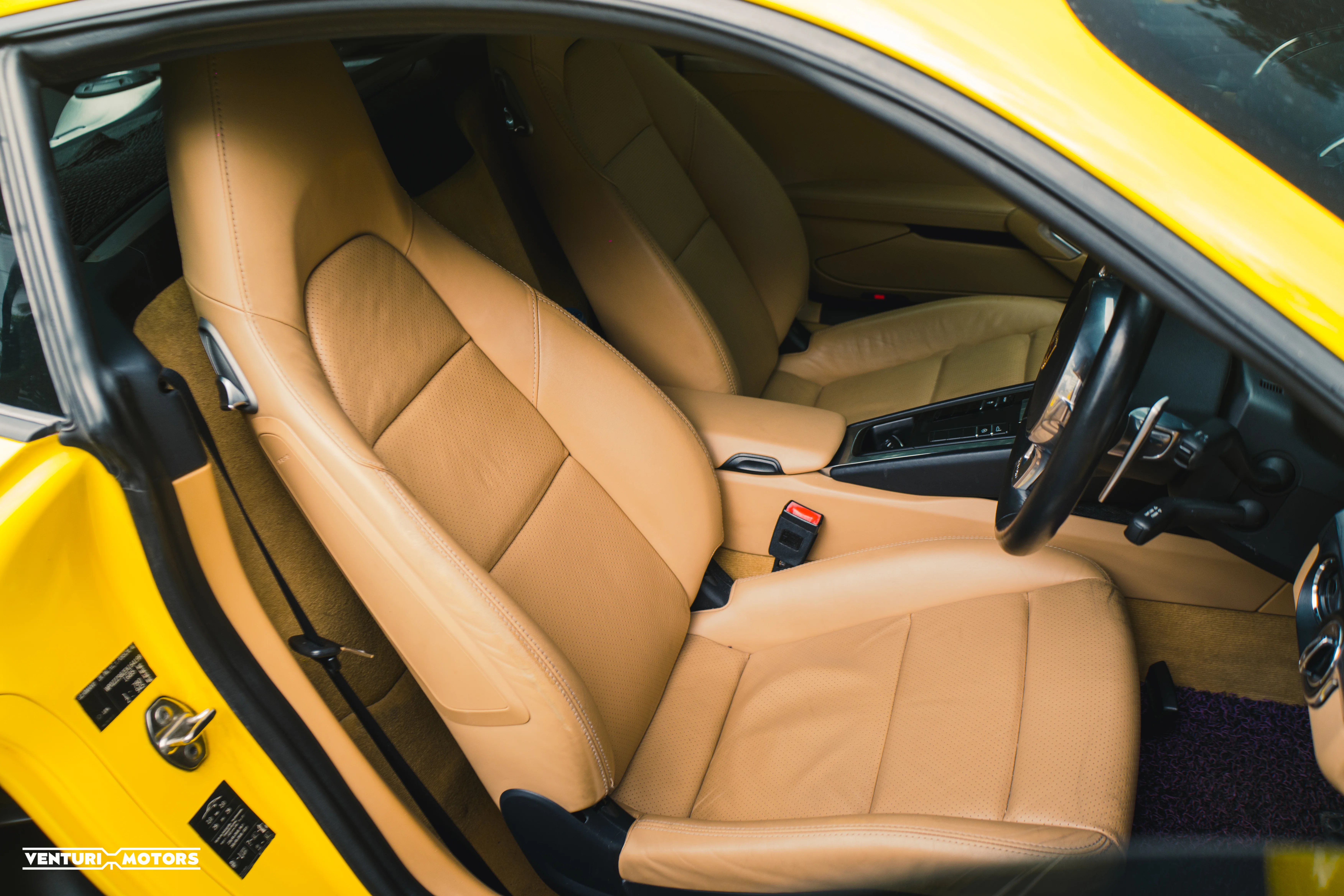 Inside, the cabin is finished in a beige interior, offering a refined counterbalance to the bold exterior. The light-toned upholstery enhances the sense of space while retaining Porsche’s signature driver-centric layout.