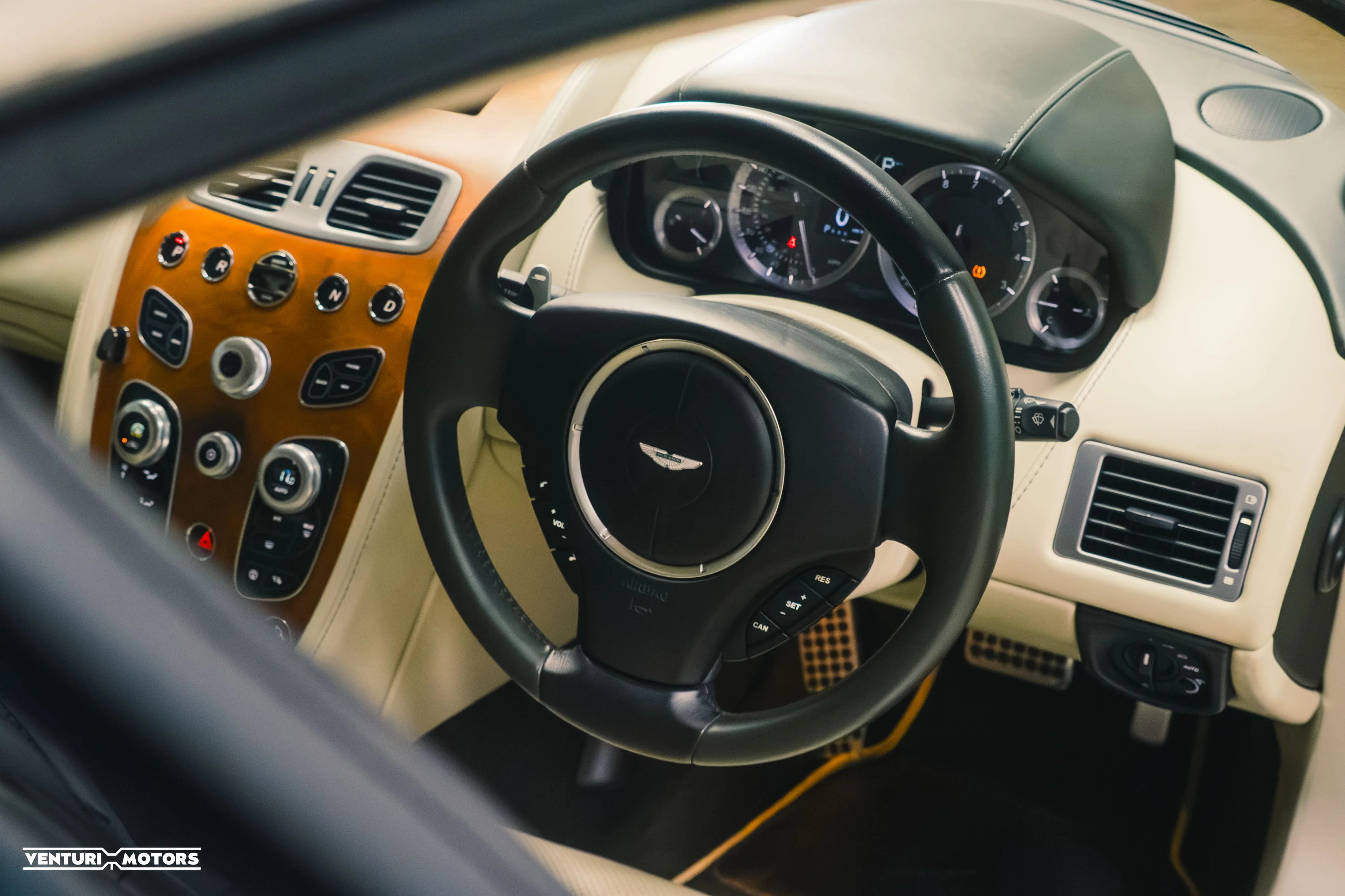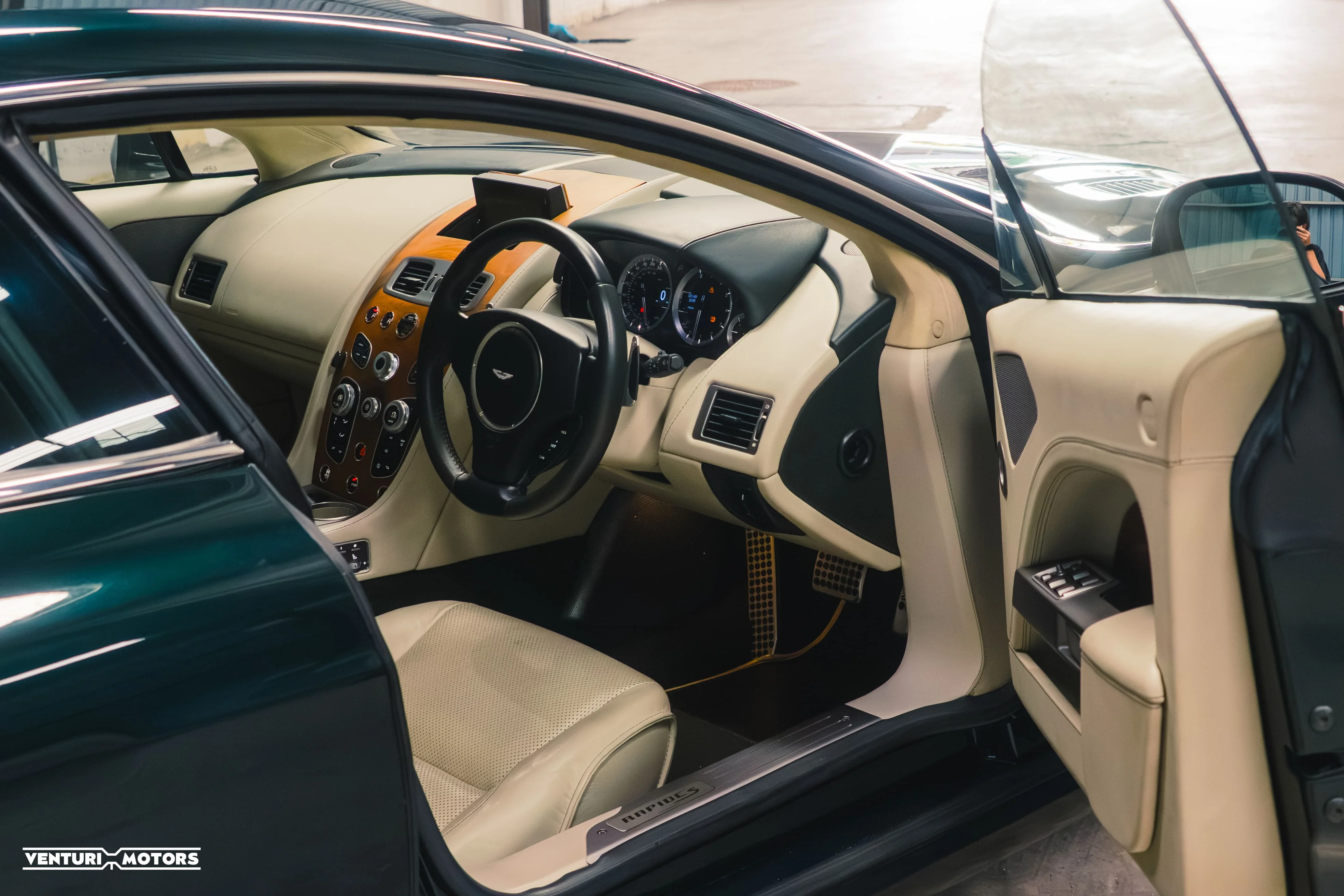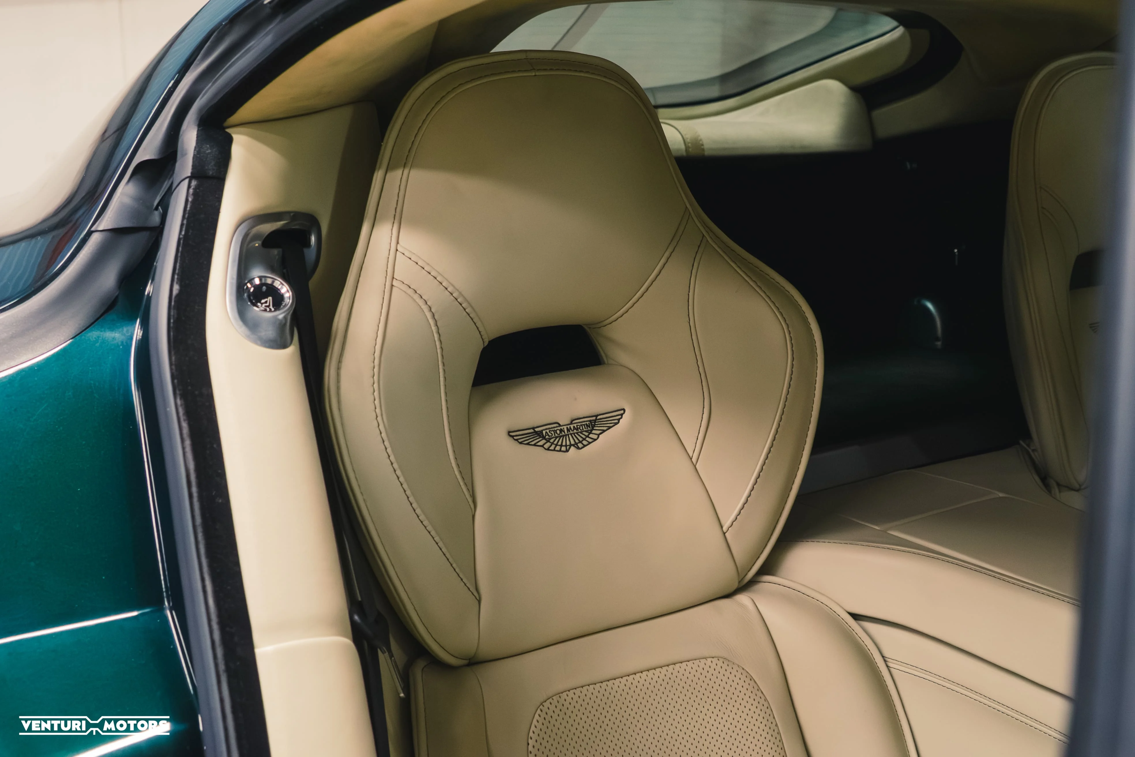 Inside, the Beige Alcantara cabin keeps things calm and elegant. You’ve got four proper seats, real materials, and that unmistakable hand-built Aston charm. It’s a place that makes you want to slow down, take the long route home, maybe even put on a little Sinatra while you’re at it.