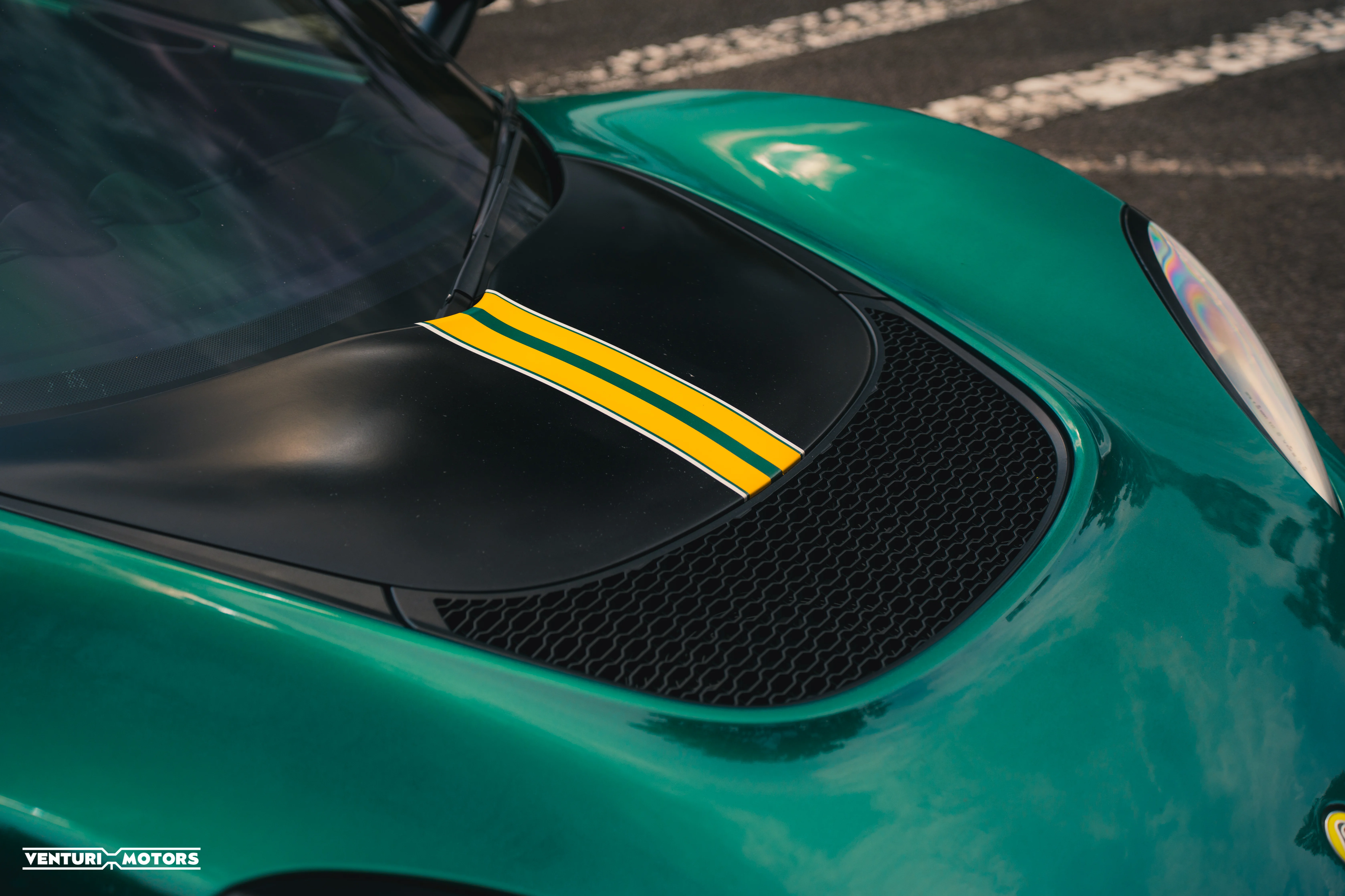 This 2016 example, registered in 2017 and delivered new via Lotus Malaysia, is finished in British Racing Green, one of the brand’s most iconic heritage colours. The deep exterior tone is paired with an Alcantara and leather cabin, detailed with contrast stitching, balancing race-focused intent with subtle refinement.